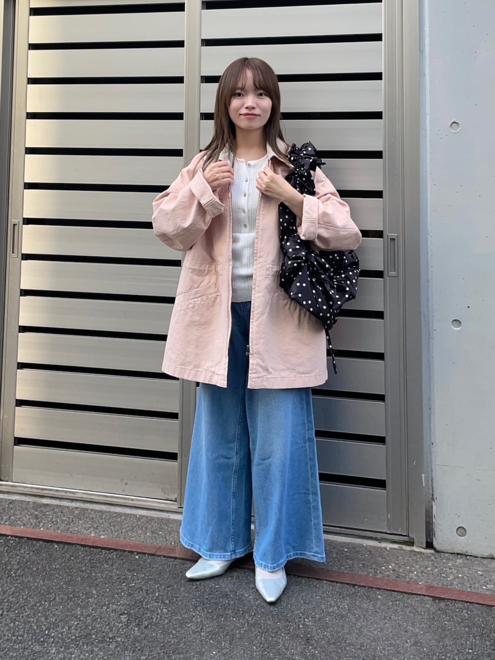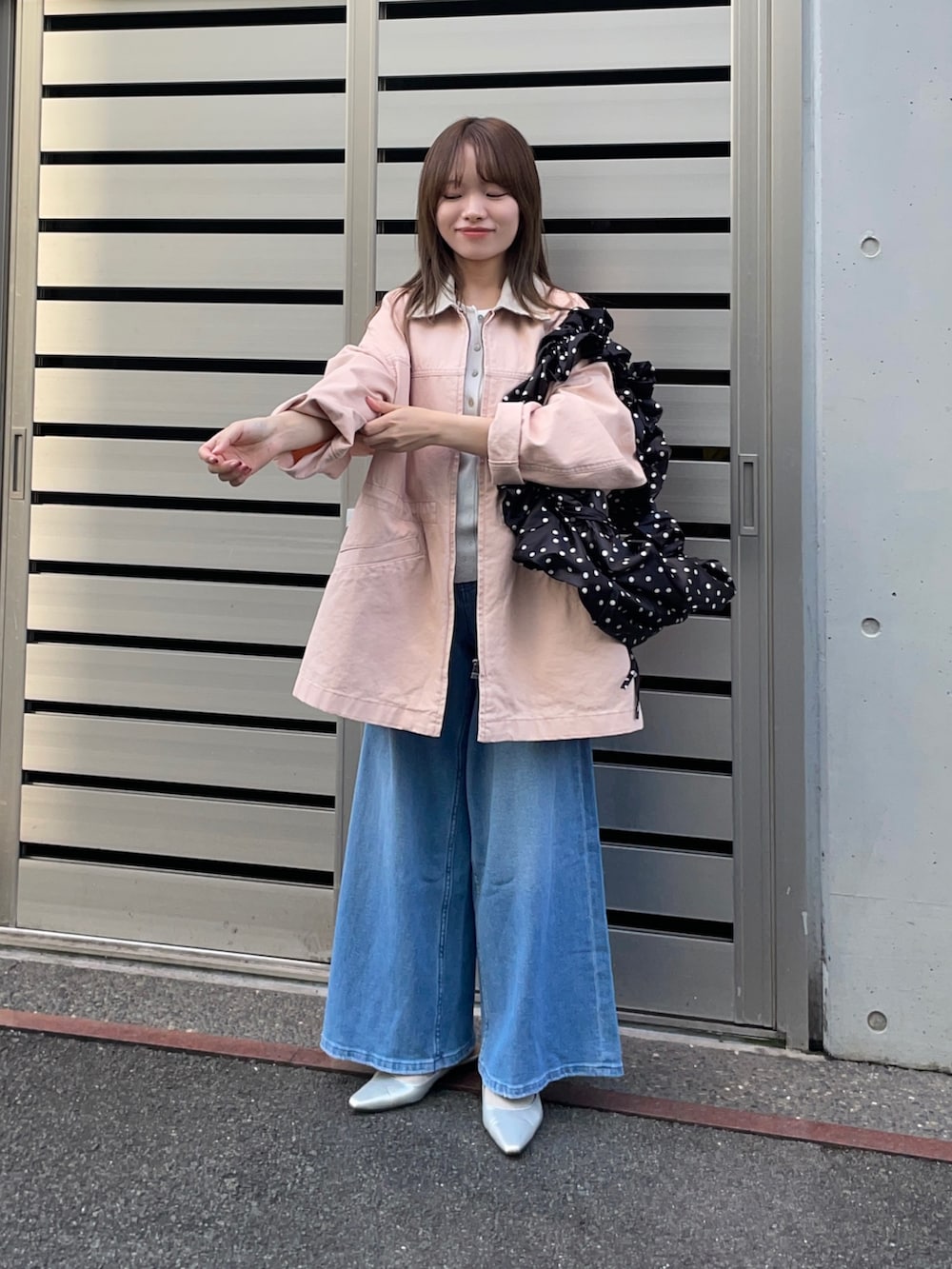オーバーサイズのカバーオールは襟元の配色が可愛く、ウエストは内側の紐で絞ってメリハリ付けることができます✨春色のアイテムで優しめピンクが可愛いアイテムです!