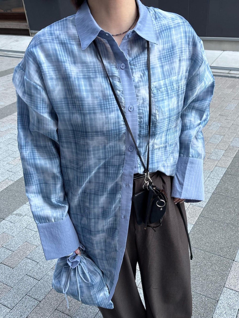 サラッとした着心地の良いシャツにシアー×チェック柄の素材をレイヤードしたKBFらしいデザインです!袖のカフスが長めなところや着たときのシルエットのキレイさなど細かなディティールにも注目です👀✨