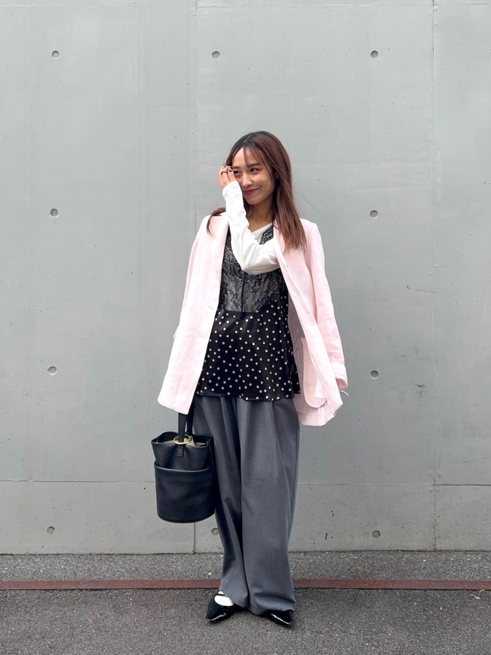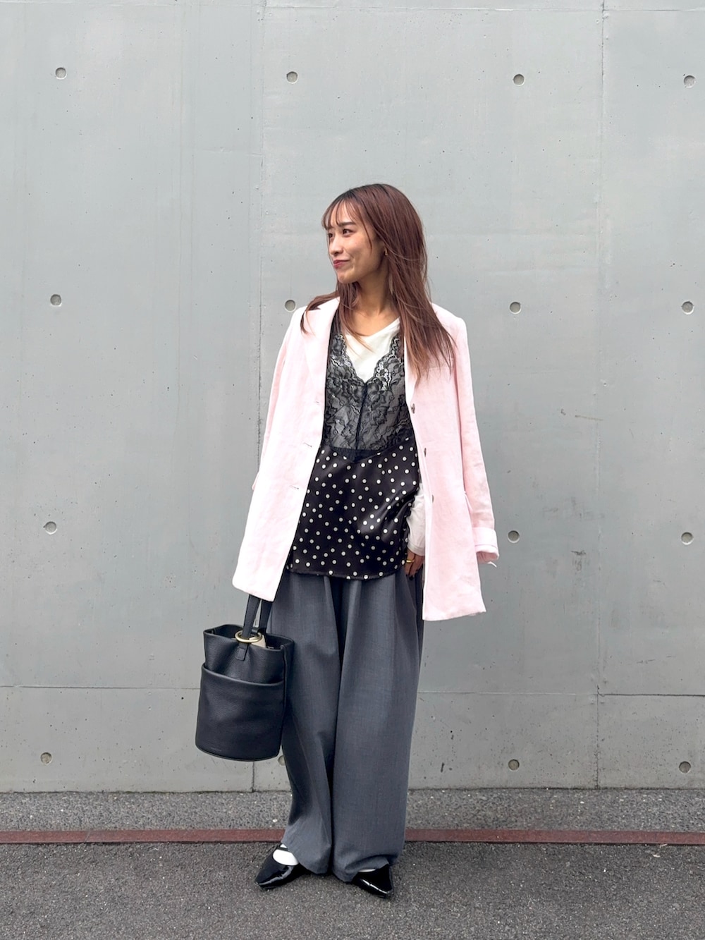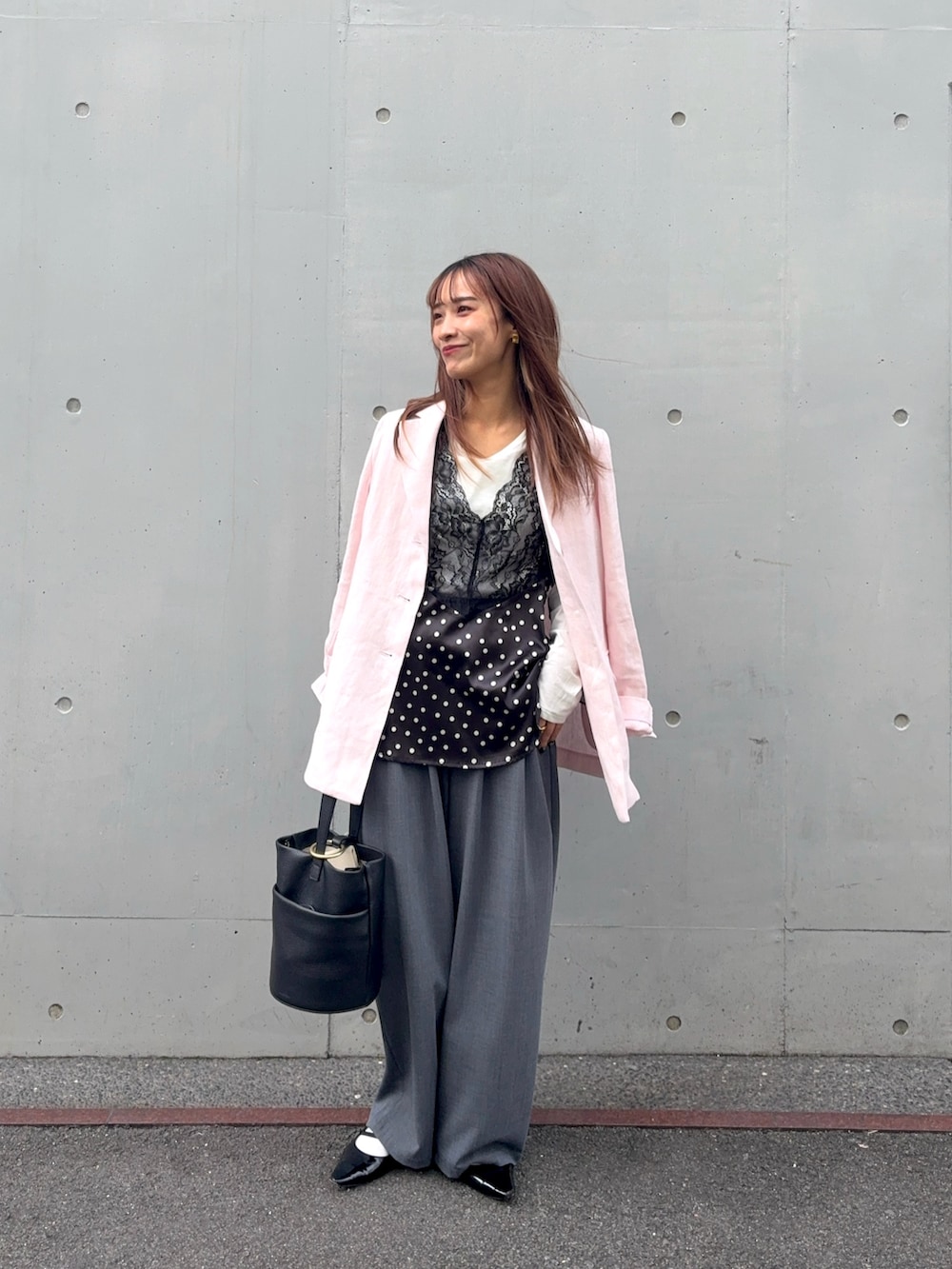 ピンクのジャケットはセットアップ対応◎