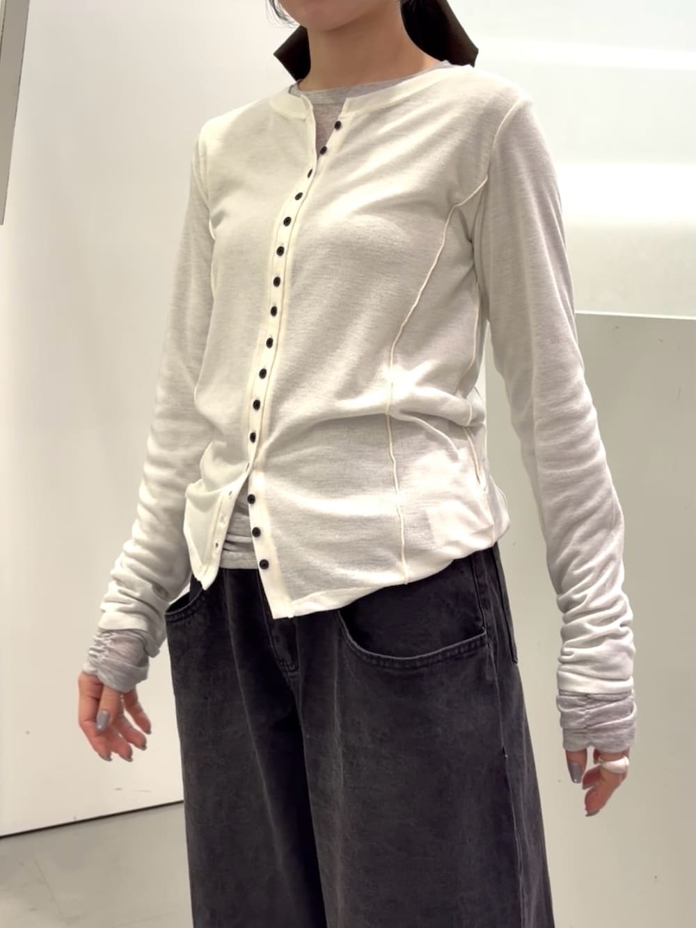 程よくフィット感があり、インナーとしても使いやすいです✨ボタンを開けて羽織りとしても着られるのでコーデの幅が広がります🫰