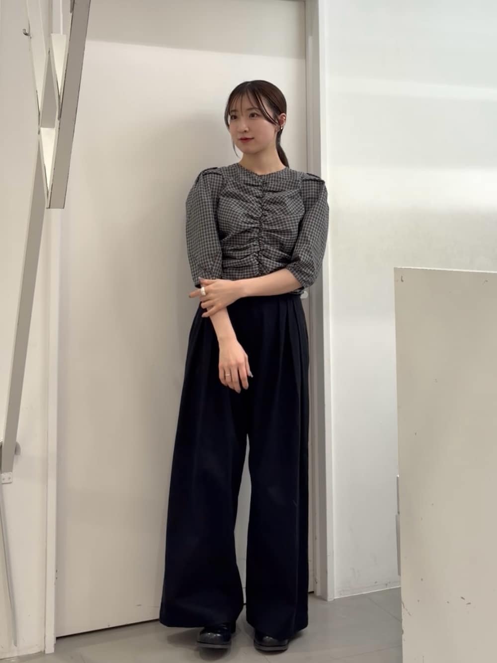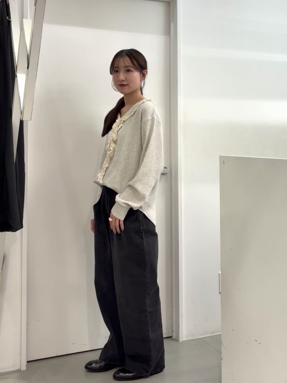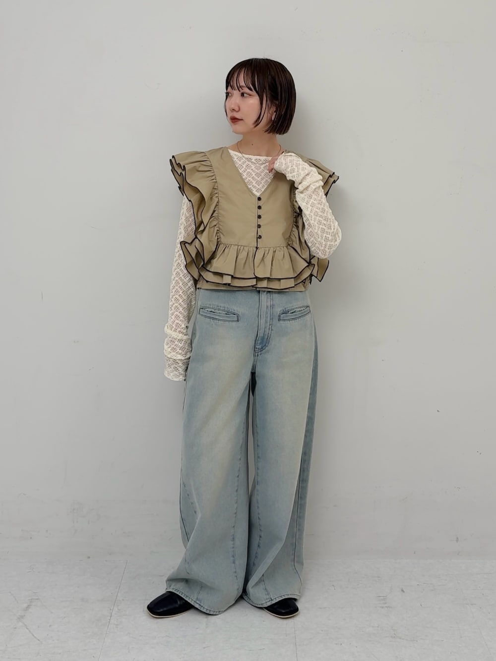 甘さのあるトップスも、ワイドシルエットのデニムでバランスを取ることで、こなれた印象に仕上がります☑️
