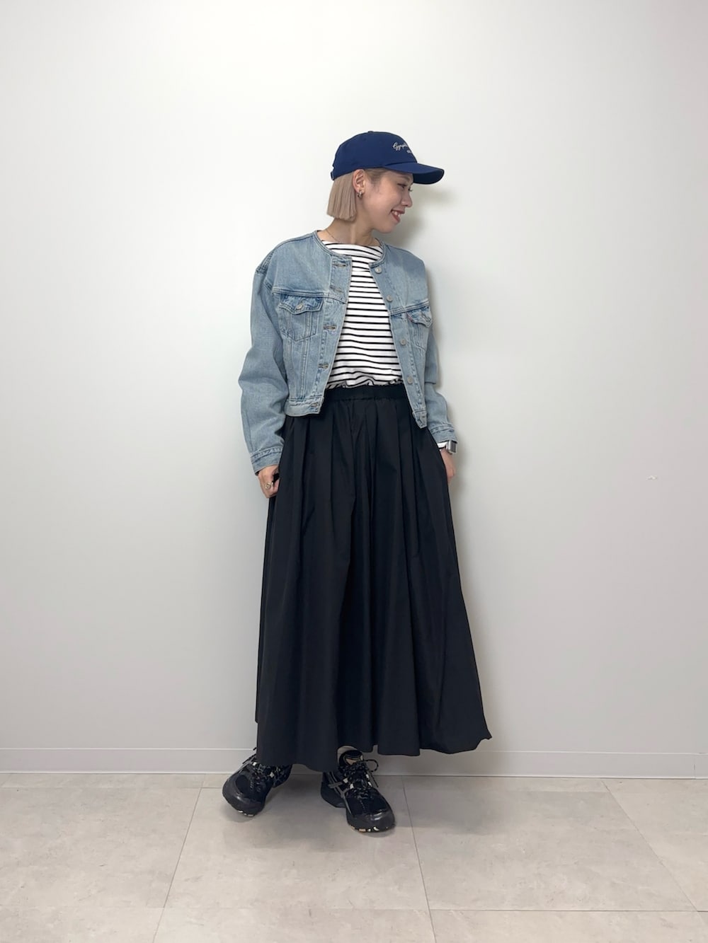ショート丈のスッキリしたデニムジャケットです!ノーカラーでお顔周りはスッキリとしています◎薄めのヴィンテージ感のあるカラーもオシャレです♪