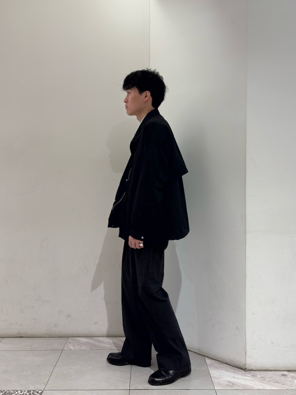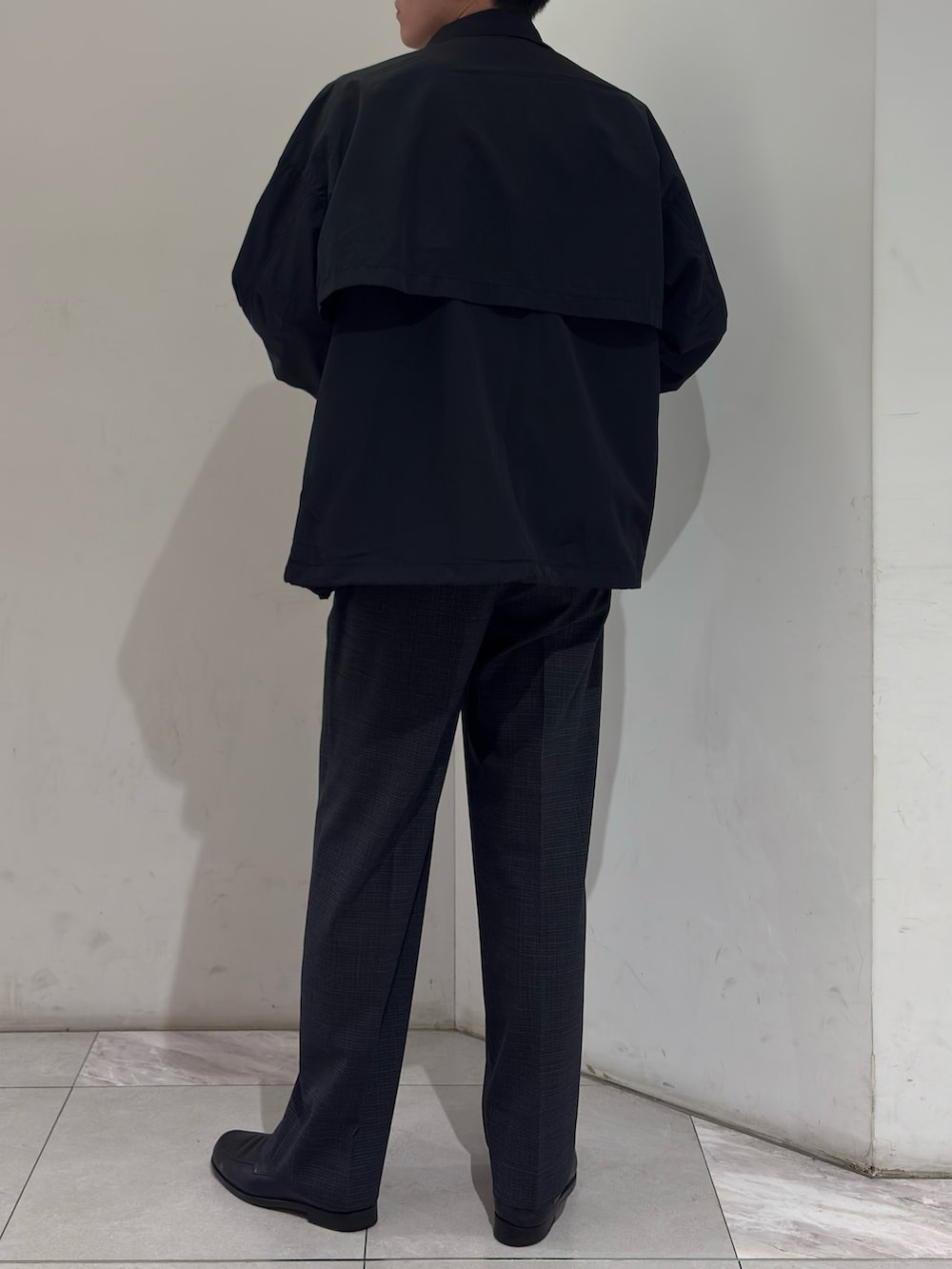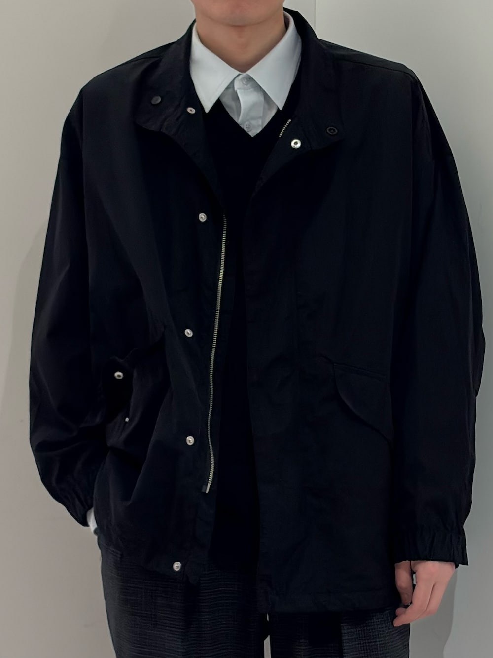 この時期、肌寒いけど冬アウターを出すまでではない。そんなお悩みを1発で解決しましょう。これです。ナイロンモッズショートブルゾンです。ナイロンの軽快さが魅力のこの1着。