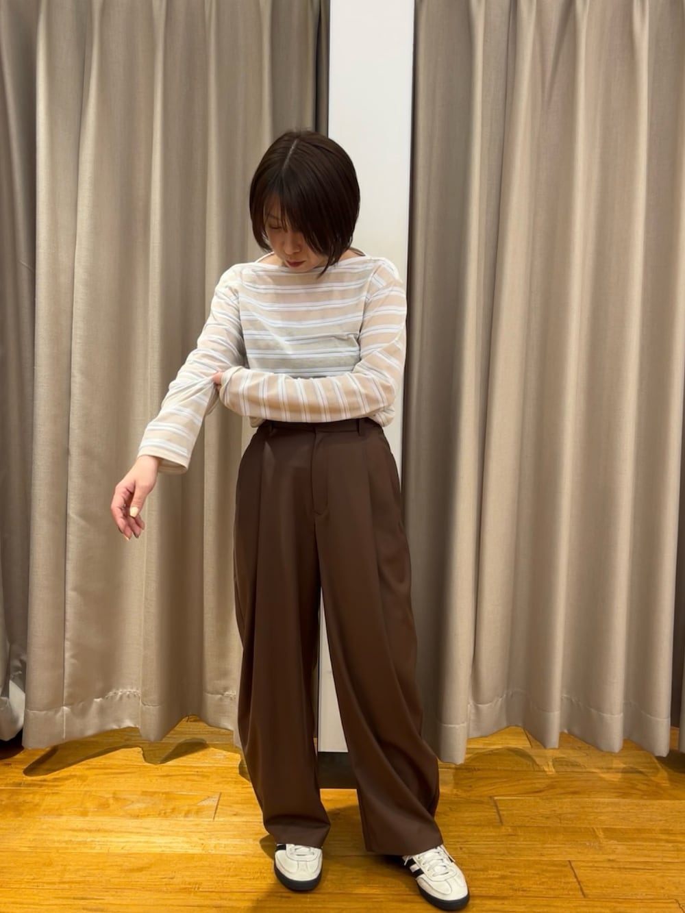 シアー感のあるトップスですが程よい透け感です。私はキャミソールを着てます。