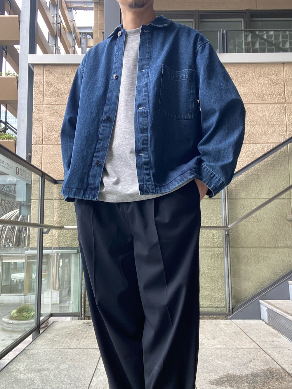 ・定番の9.5オンスデニムを使用し、シャツをベースにアウターとしてアップデート。程よい厚みで、しっかりとした着用感が特徴です。
