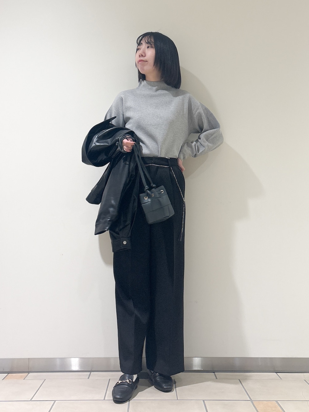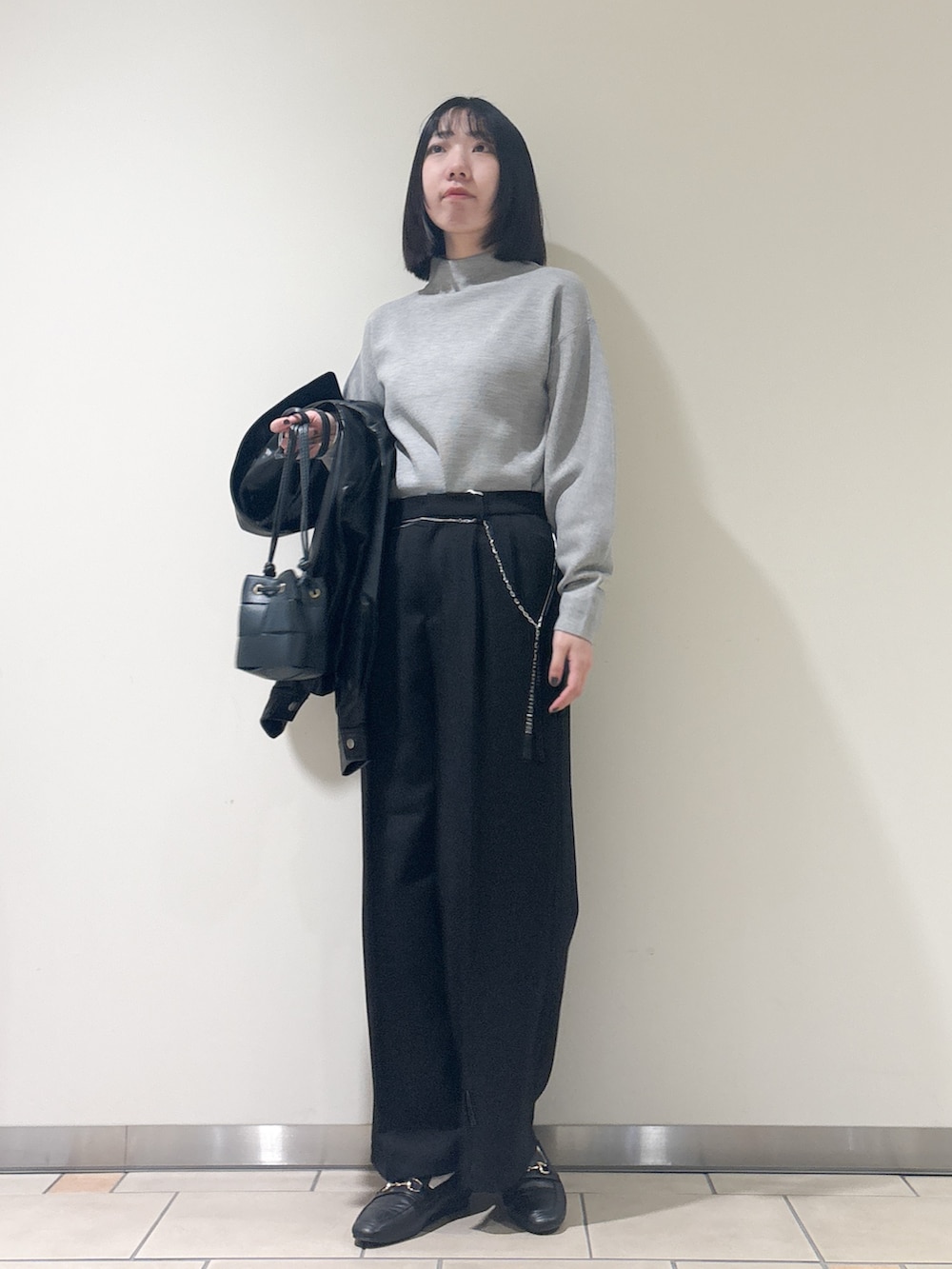 スラックスで合わせた綺麗めスタイルです〜!チェーン付きなのでベルトなしでも決まります!