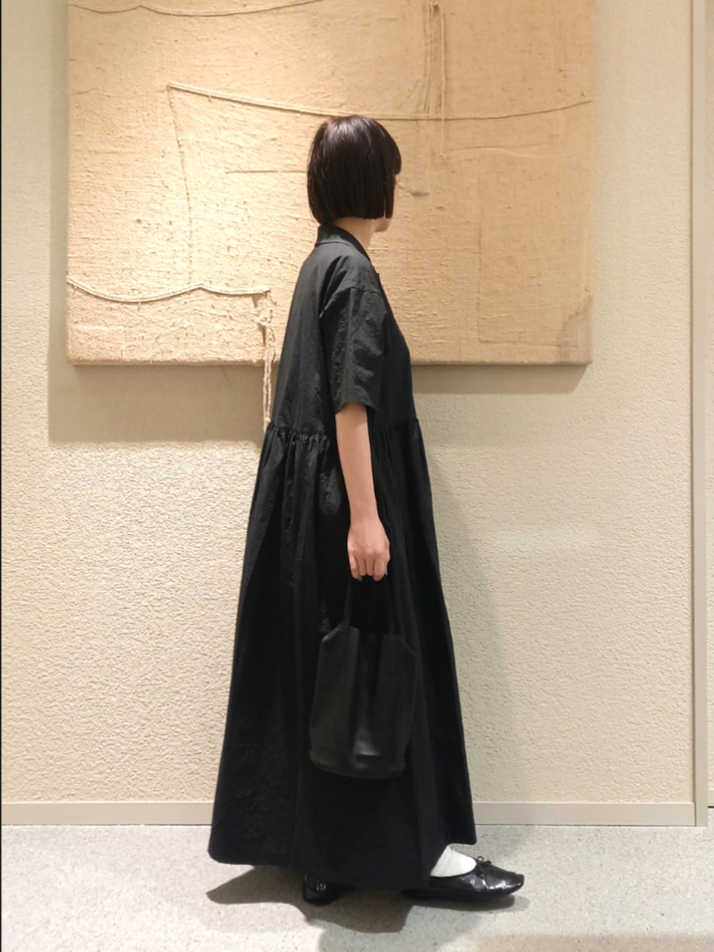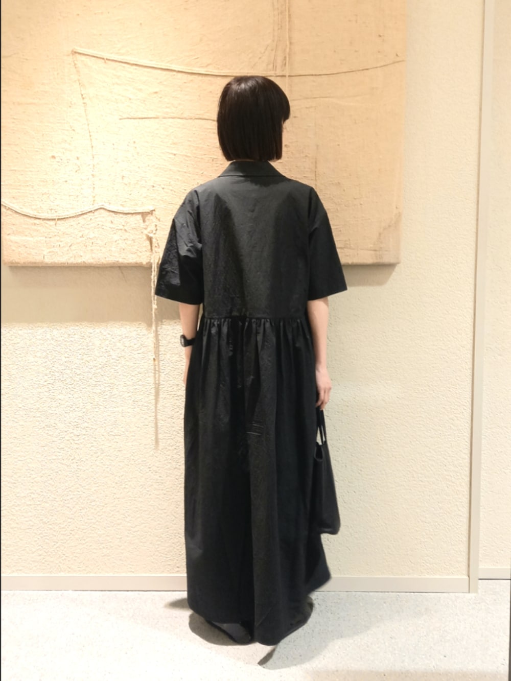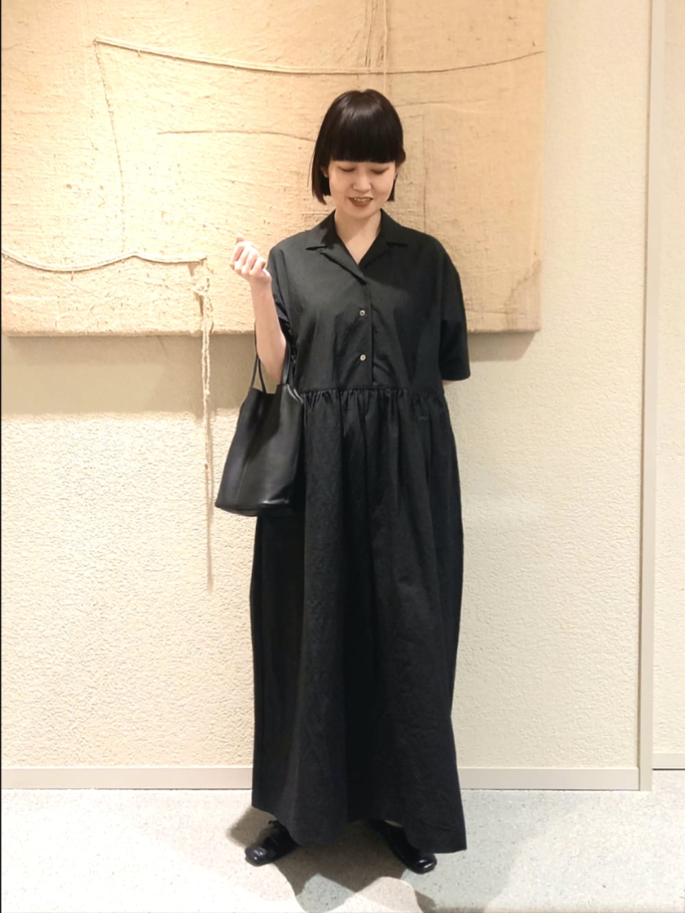 オープンカラーのシャツワンピースはシンプルに一枚で着るだけでサマになるデザインです。