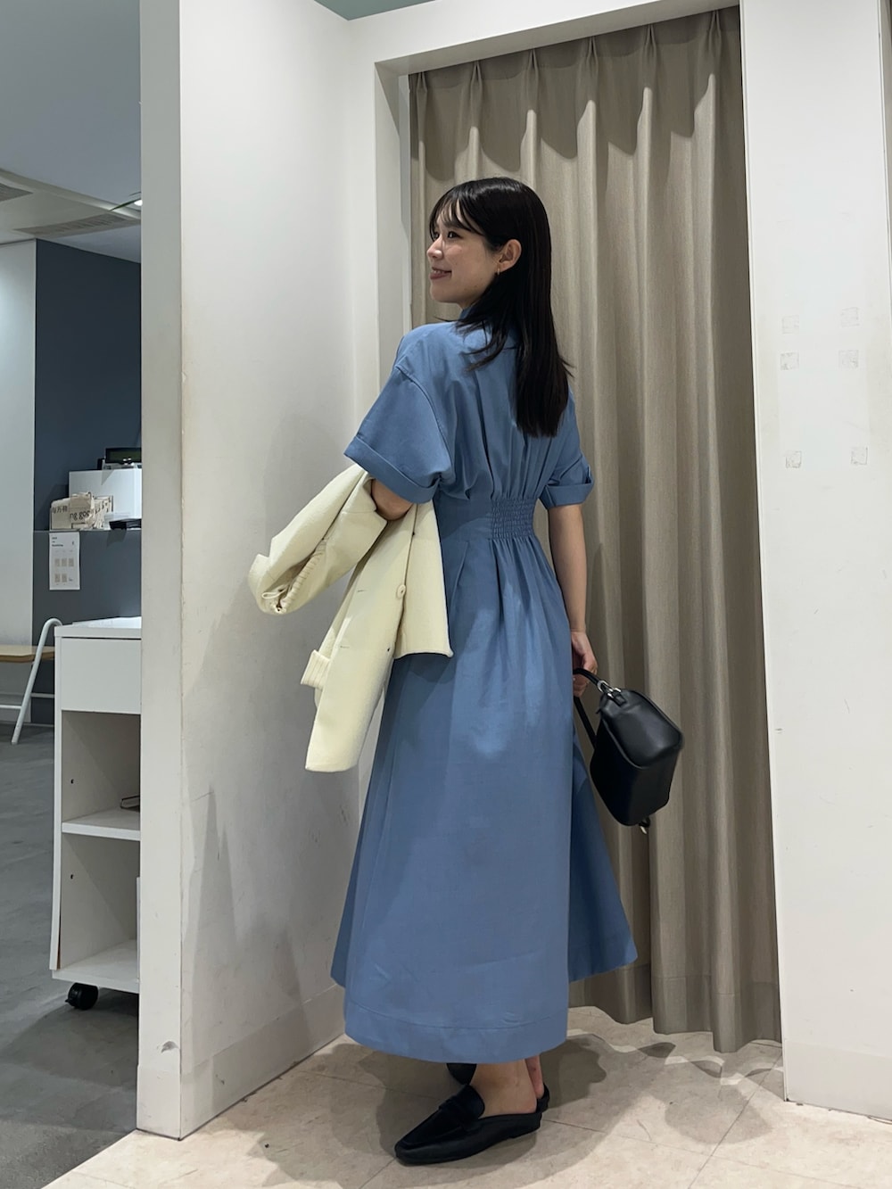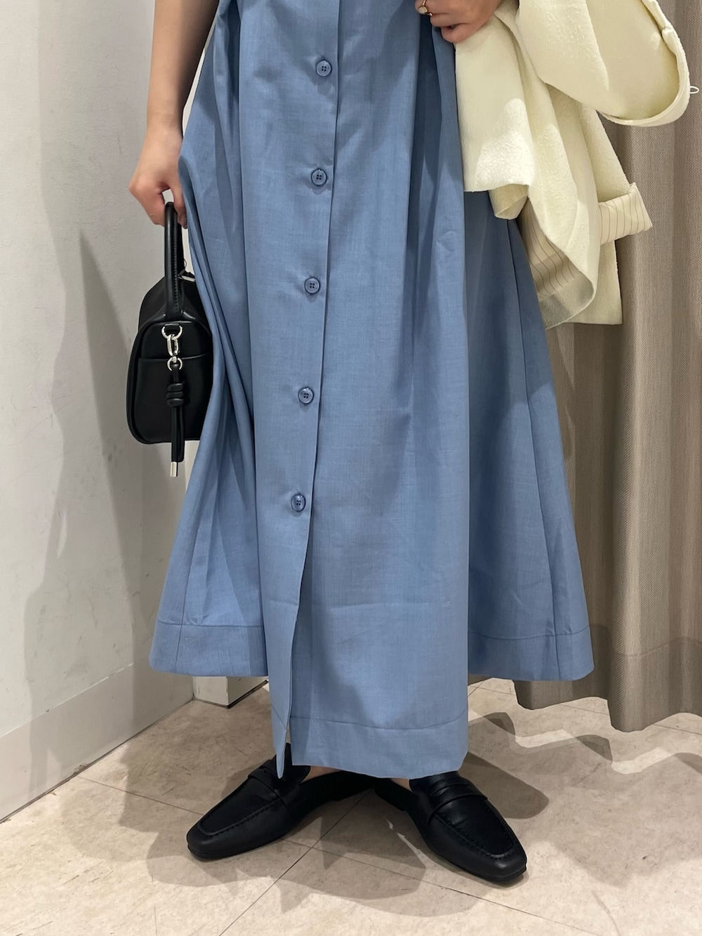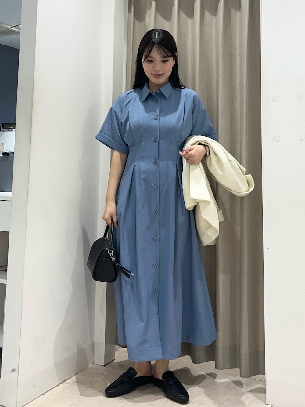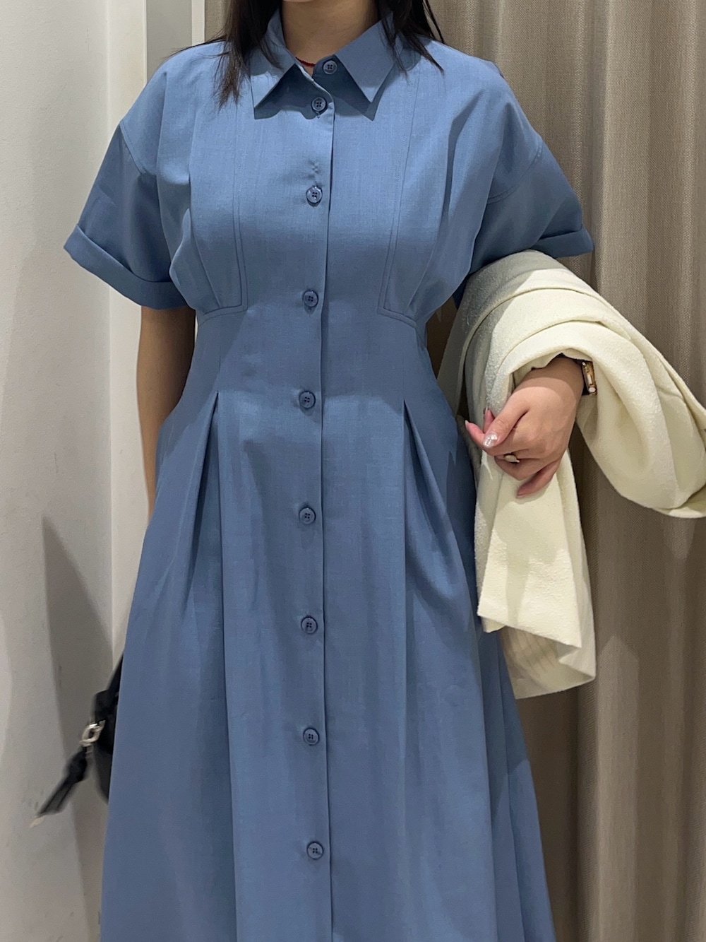少し高めの位置にタックが入っており、自分のスタイルとは思えないほど細見えさせてくれる魔法のワンピース。