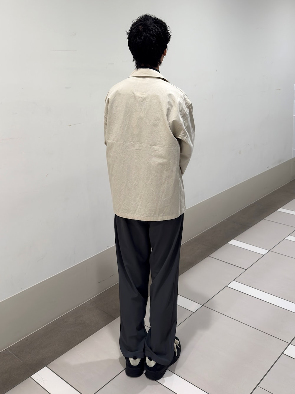 インナーにカラーシャツを合わせて、シンプルながら程よくアクセントをプラス。