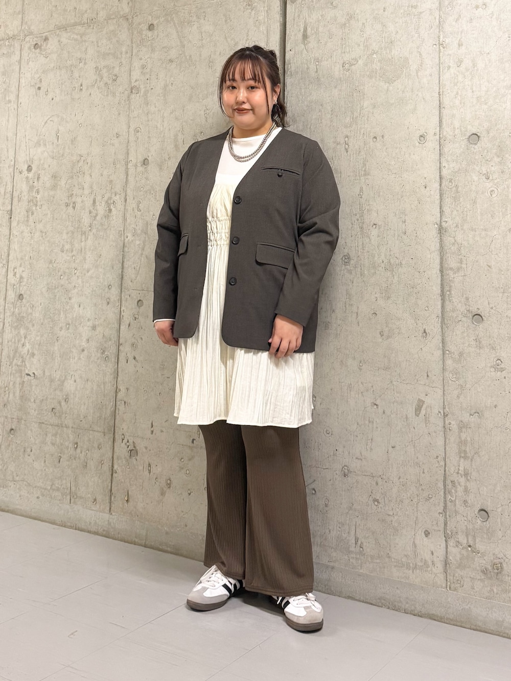 アウターは、ショート丈で程よいハリ感が女性らしく今の季節にぴったりです✨
