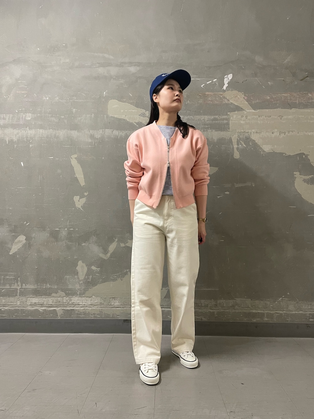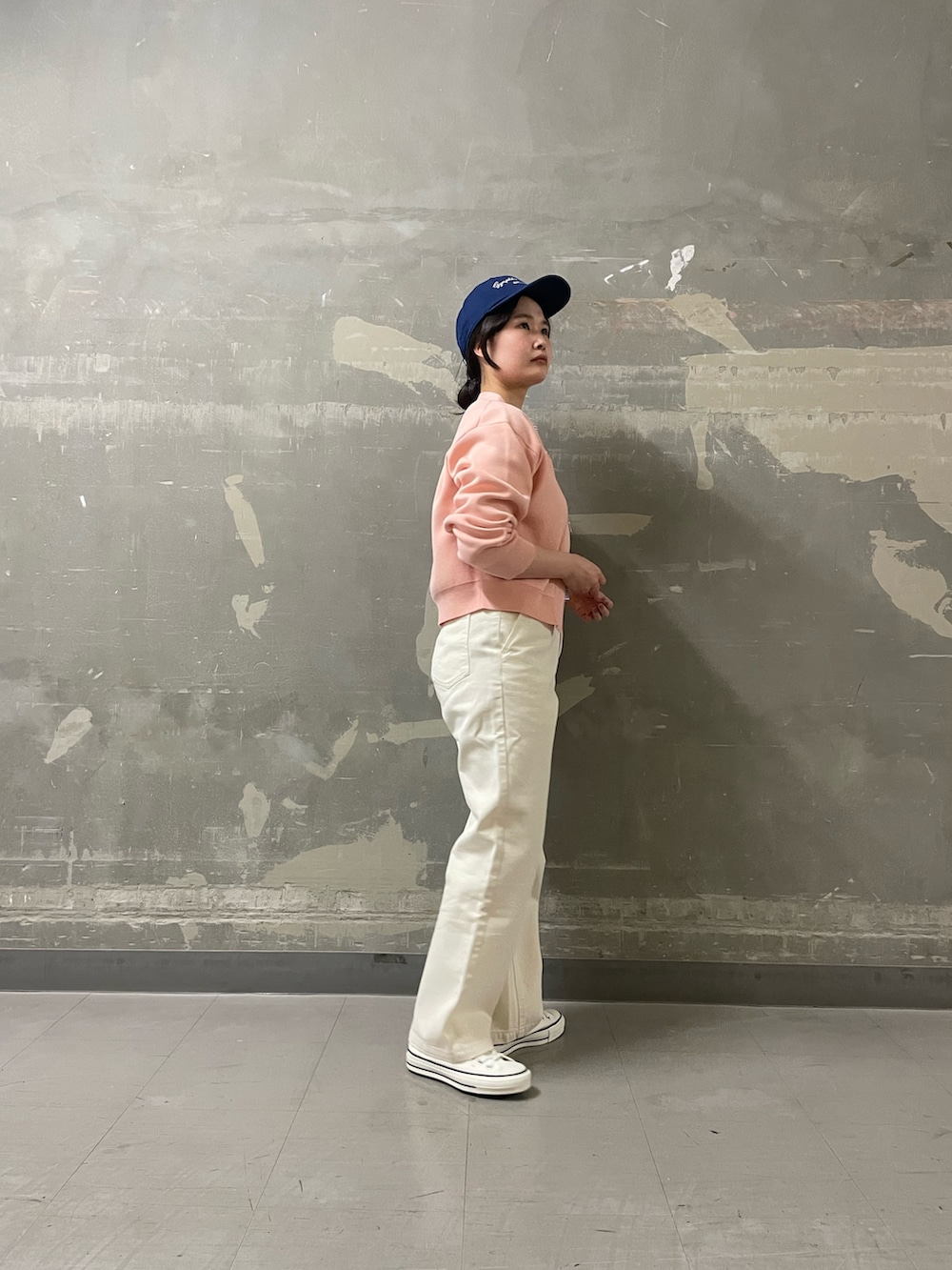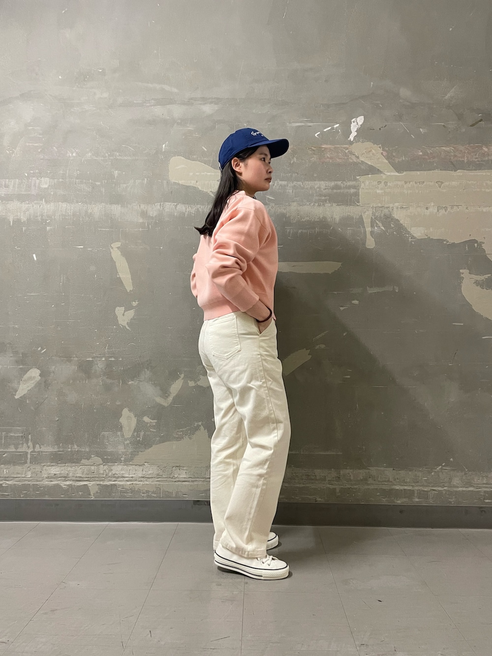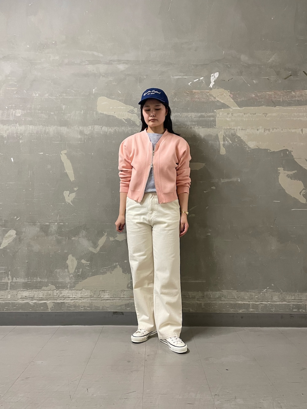 白みの強い甘めカラーを自分らしくスポーティに落とし込みました🧢