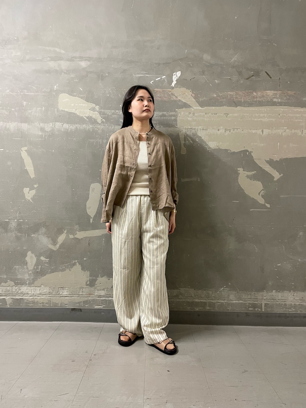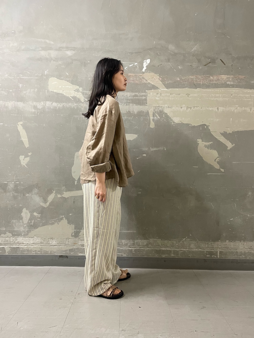 リネンのラフな風合いもあって、どこか海沿いを感じる雰囲気に🌊