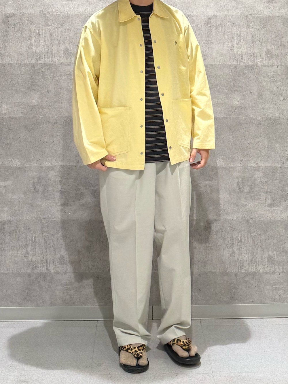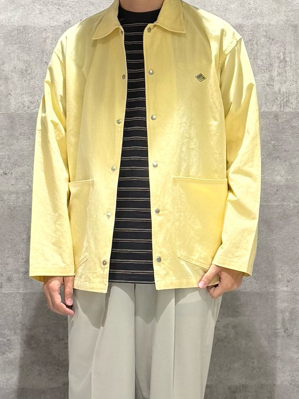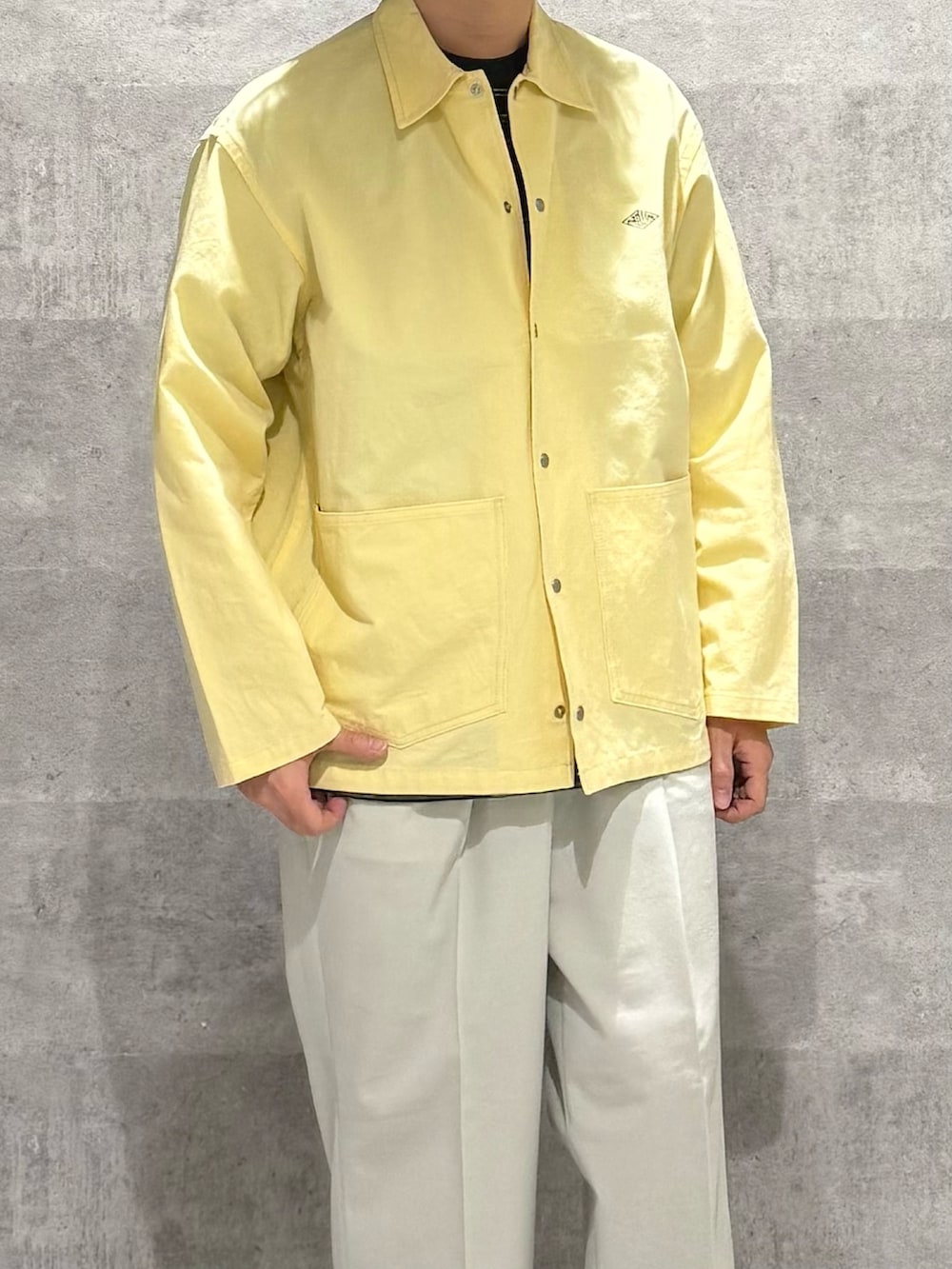 デザインはカバーオールで生地はシャツのように薄いので夏前まで着れるのがGOOD