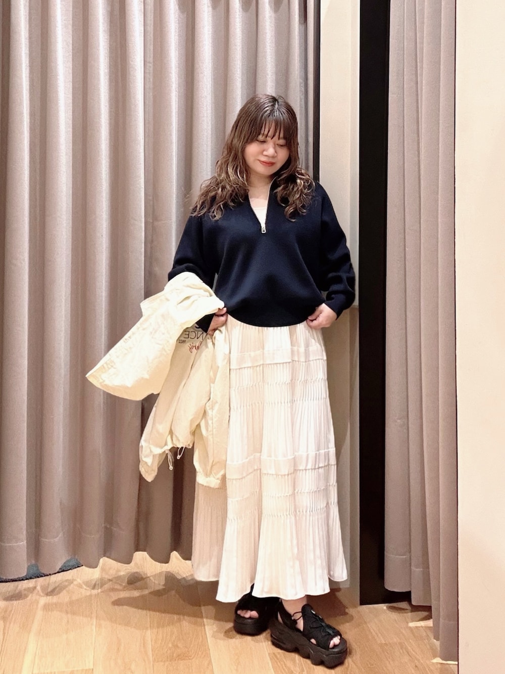裾にドローコードがついているので絞ることもできます🔆
