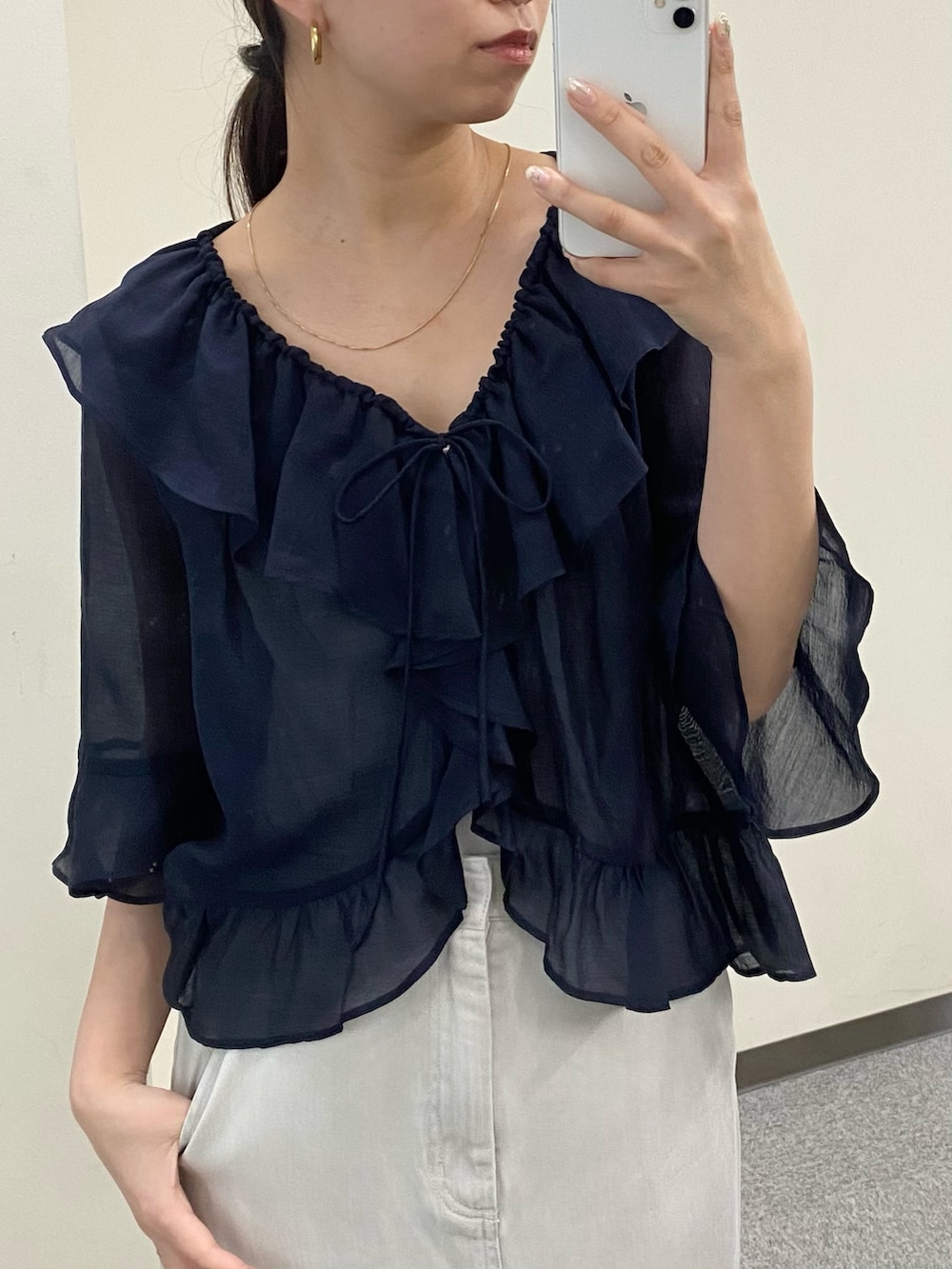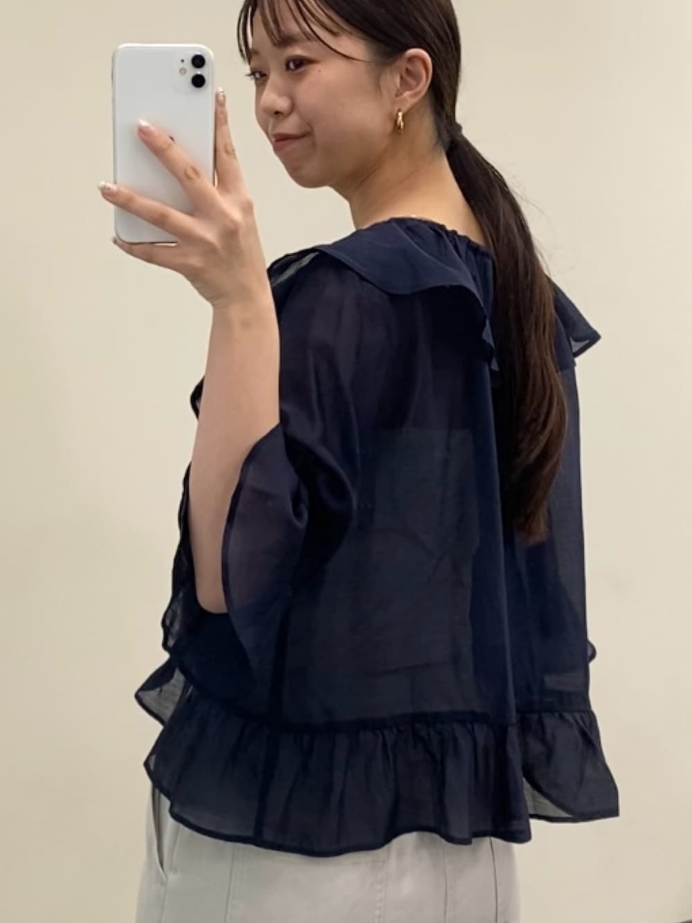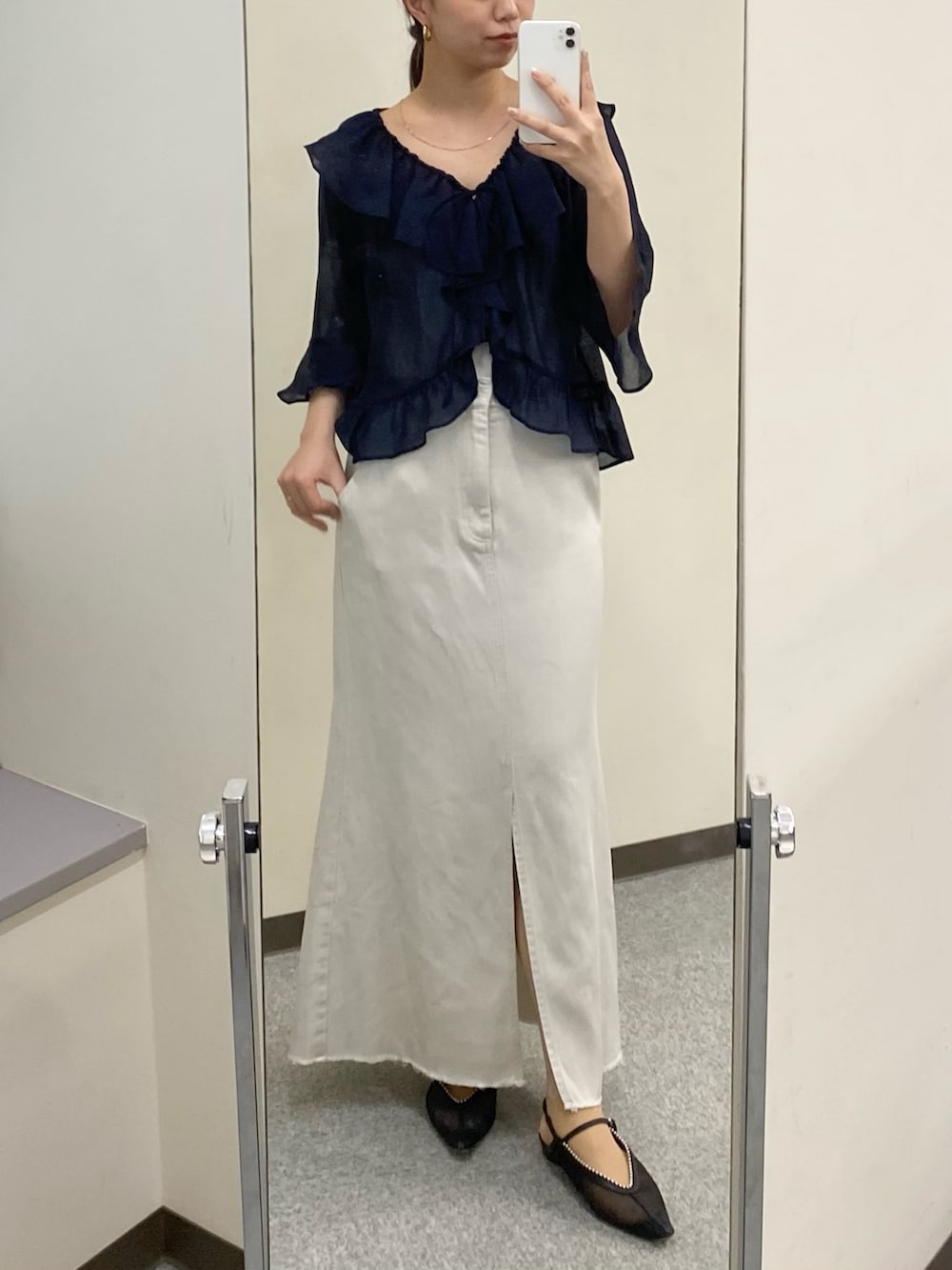ツヤのあるデニムスカートで合わせるのがおすすめです☺︎