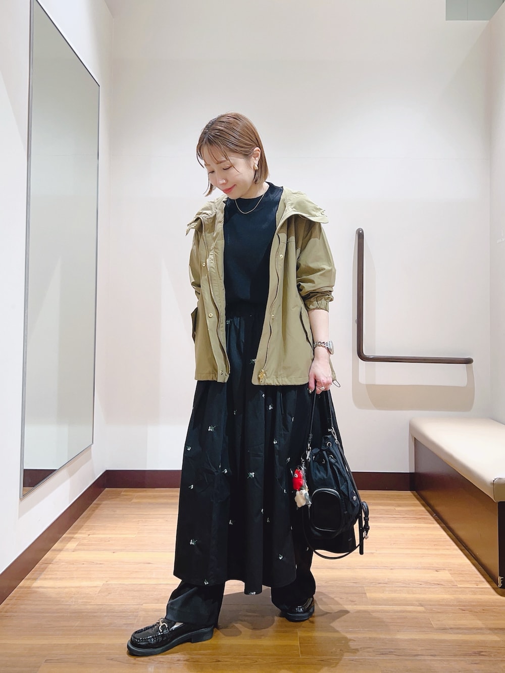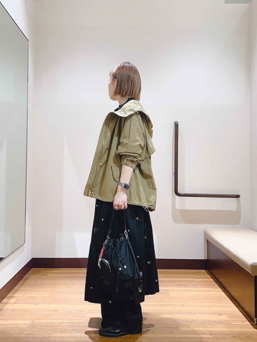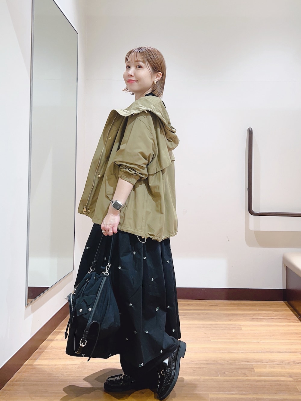 ドローコードで裾が絞れるので、シルエットも変えられます😊