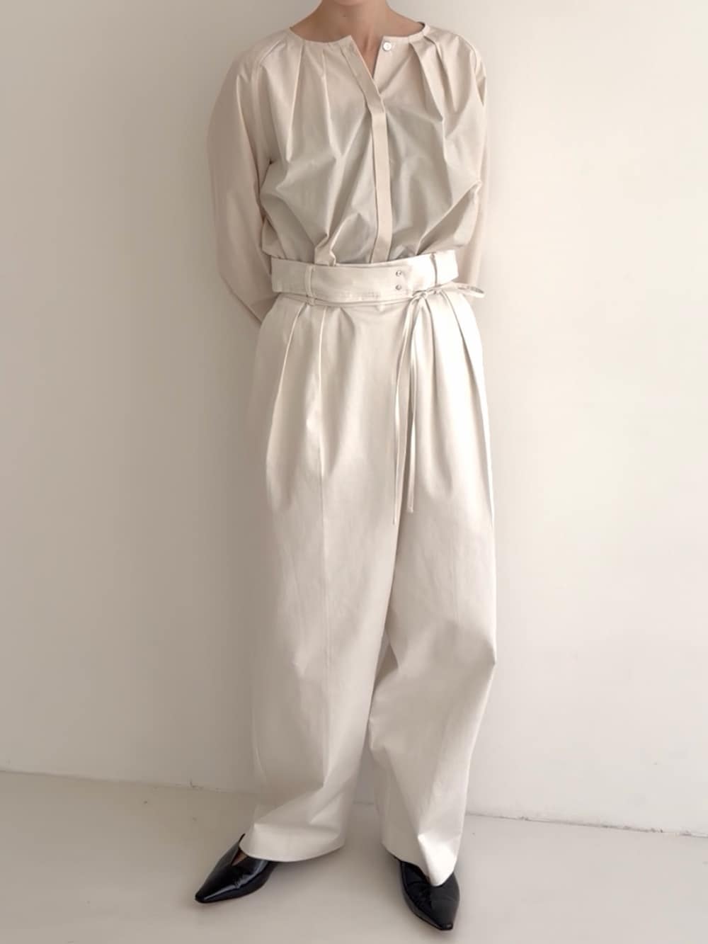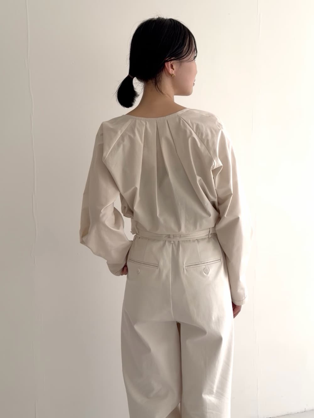 タックボリュームショートシャツブラウス