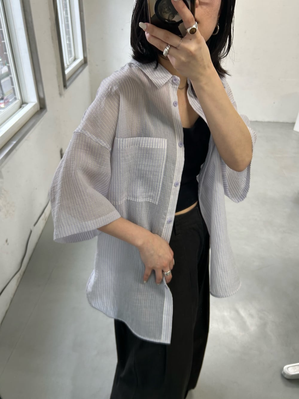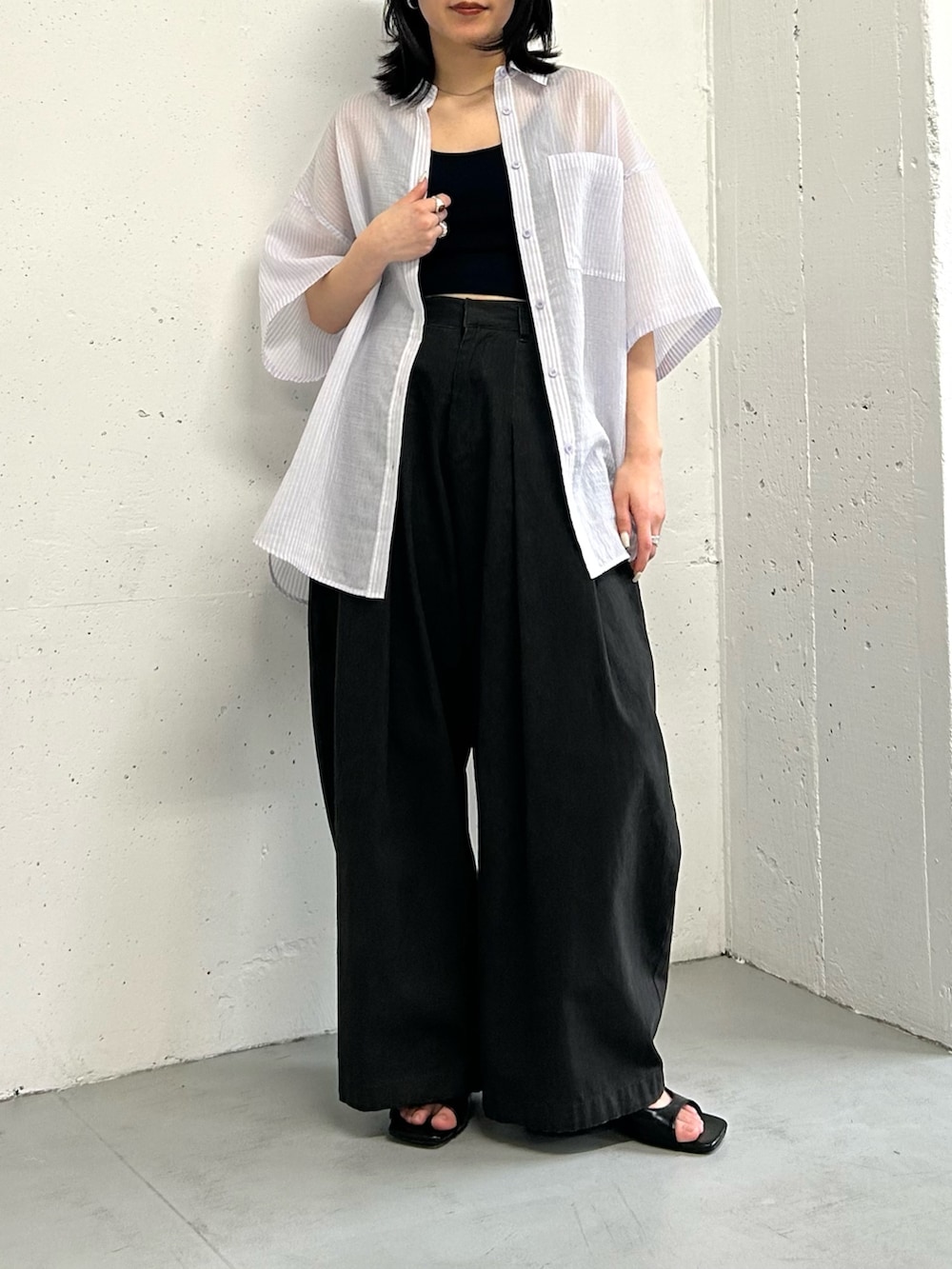 シャツ以外を黒でまとめることで、シャツがメインになるようにしました^^