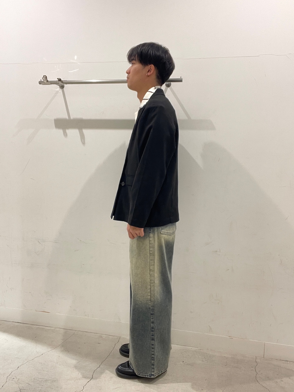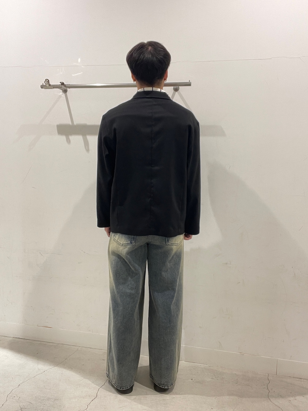 ブラックジャケットにシアーシャツで抜け感をプラス!