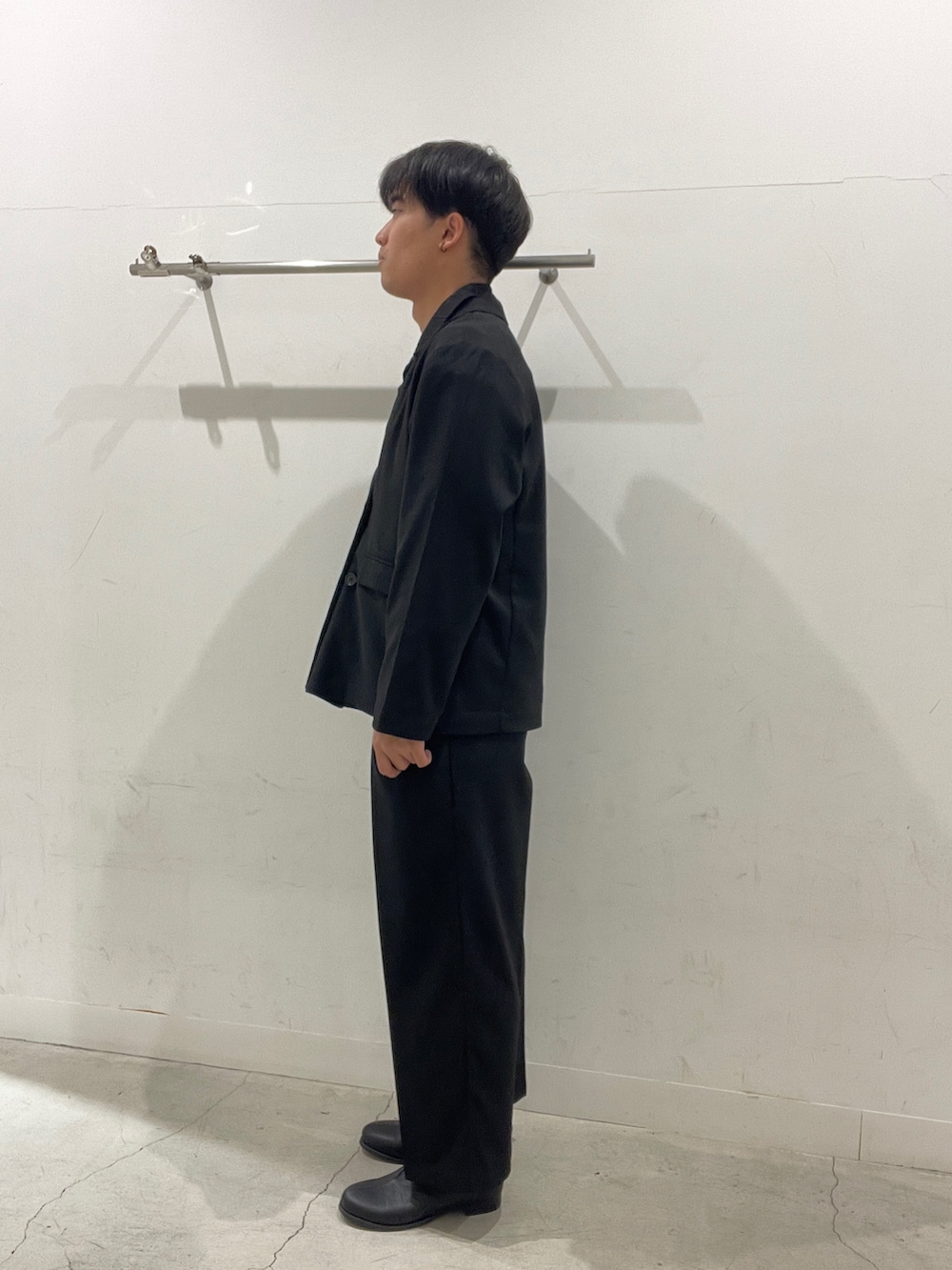 ブラックジャケットとシアーシャツで奥行きを作ったオールブラックス◼️