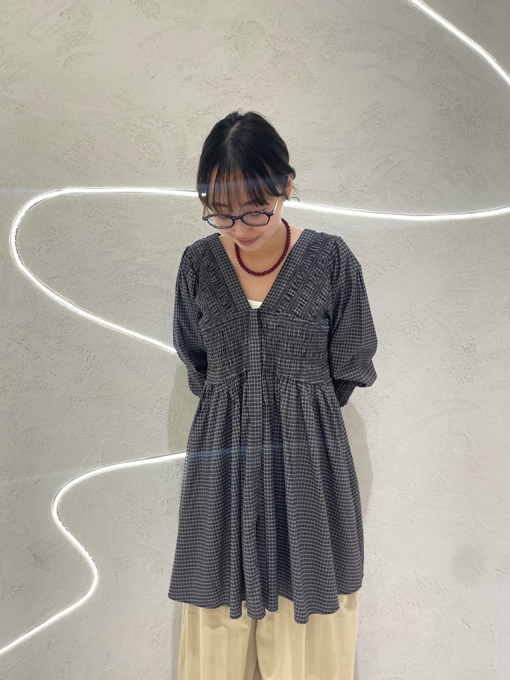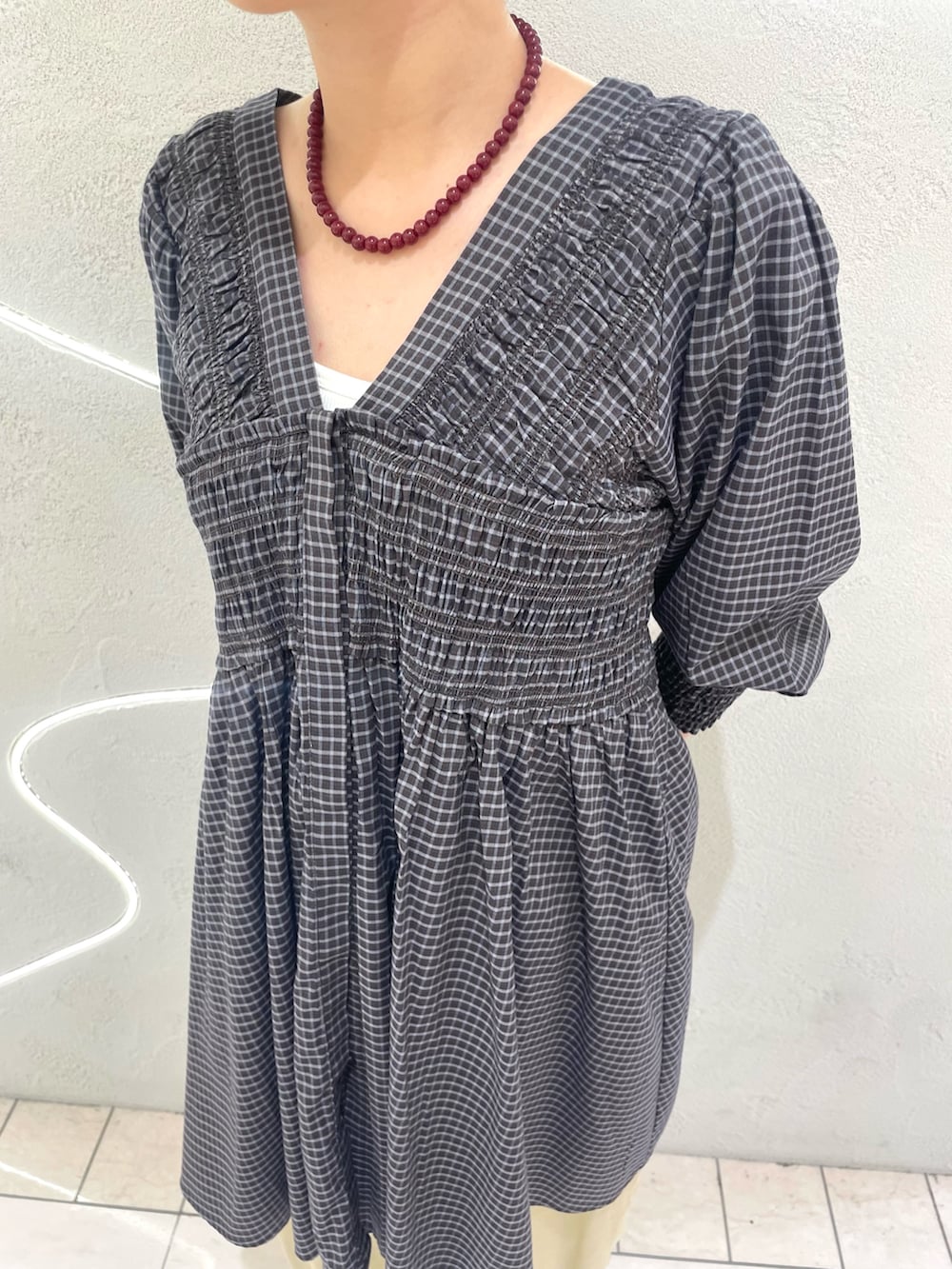 【2WAYシャーリングチェックミニワンピース】
