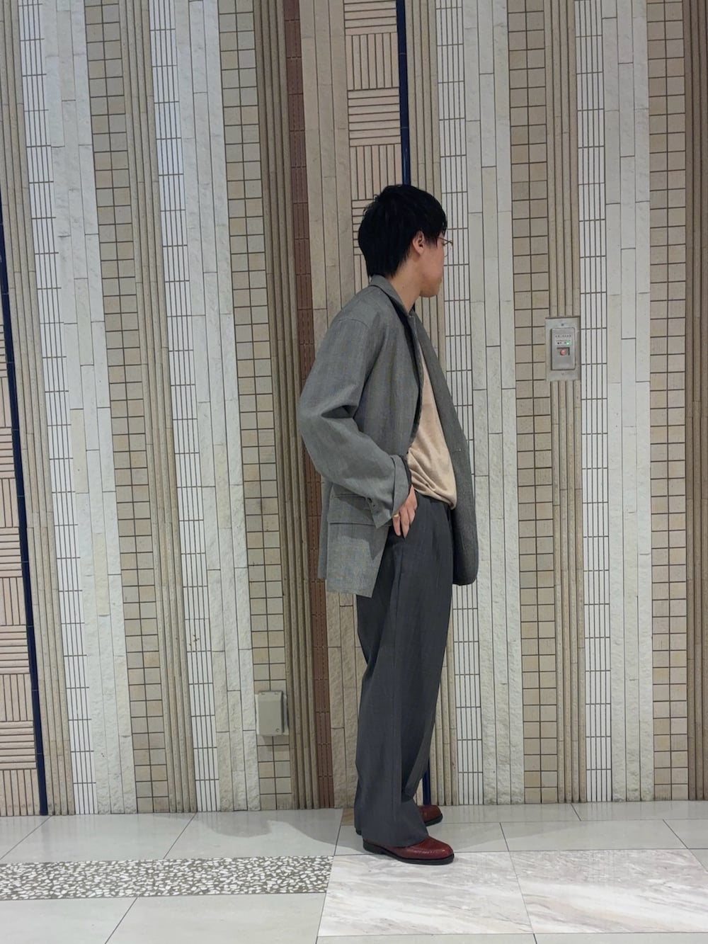 さて、クールに見える配色です。アホ面晒してる私ですら流石にintelligenceが滲みます。色と印象とは改めて密接な関係にあると感じますね。肝はインナーのニットポロです。柔らかい色味と質感の良さにクールさのバフと優しさのバフをかけてくれている気がしています。