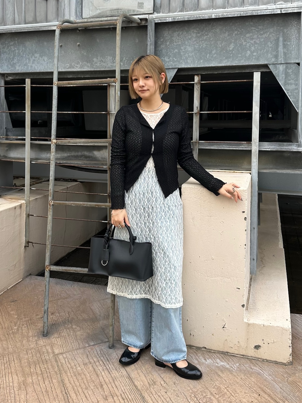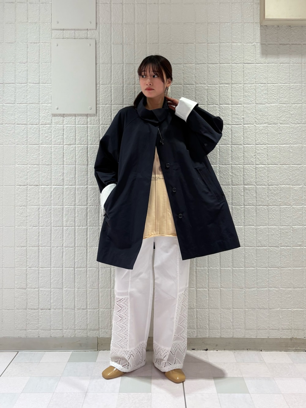 オーバーサイズなので足のラインが綺麗に見えるリブパンツで女性らしく🕊️