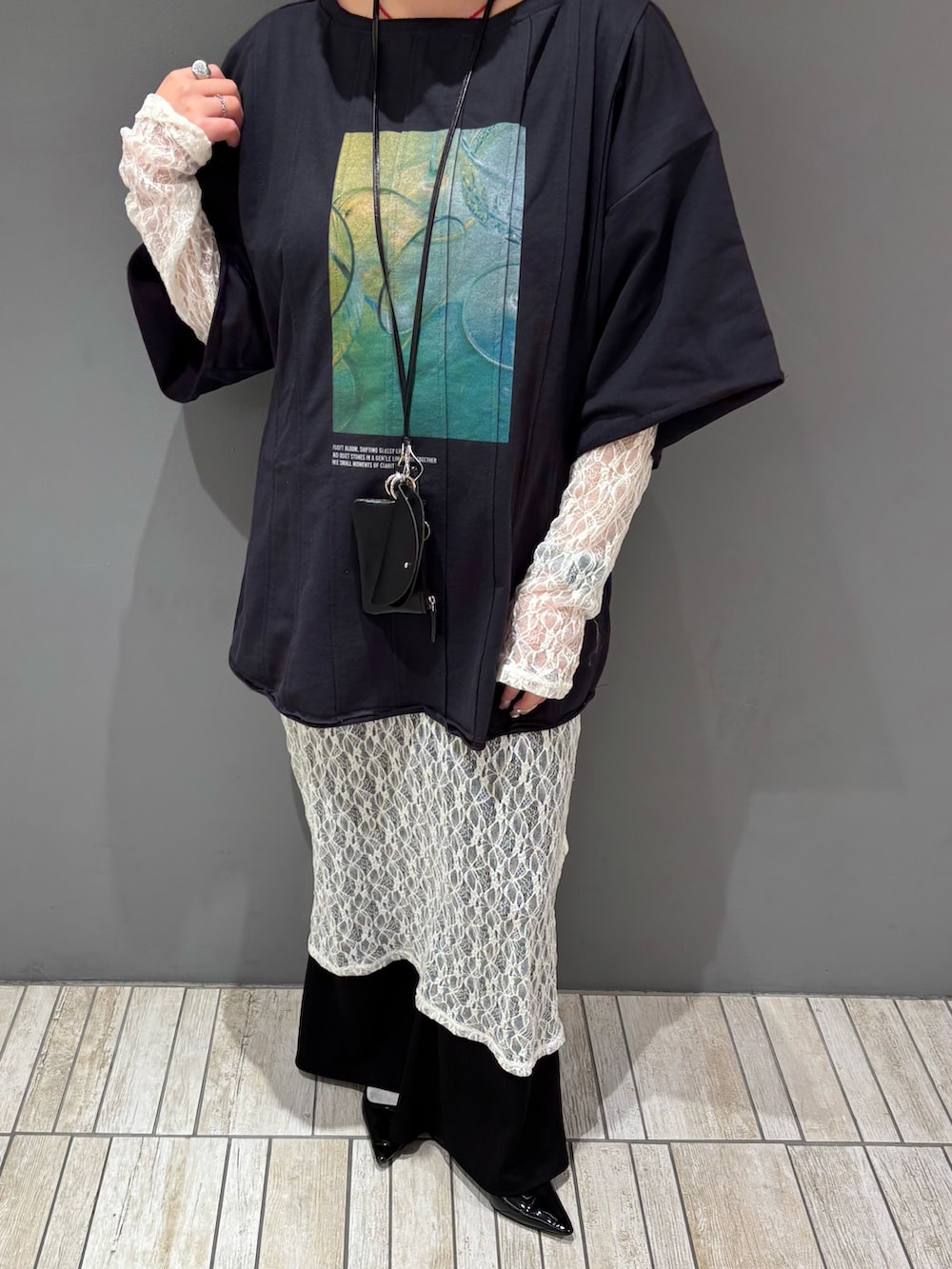 ・レースのロングワンピースでレイヤードコーデの完成&下半身の体型カバー.ᐟ.ᐟ.ᐟ