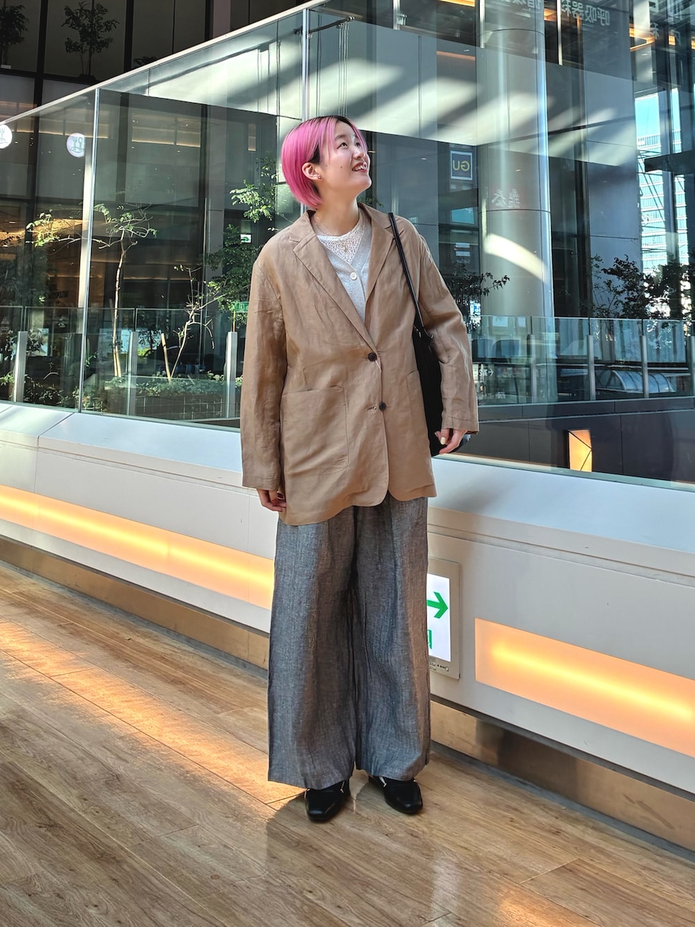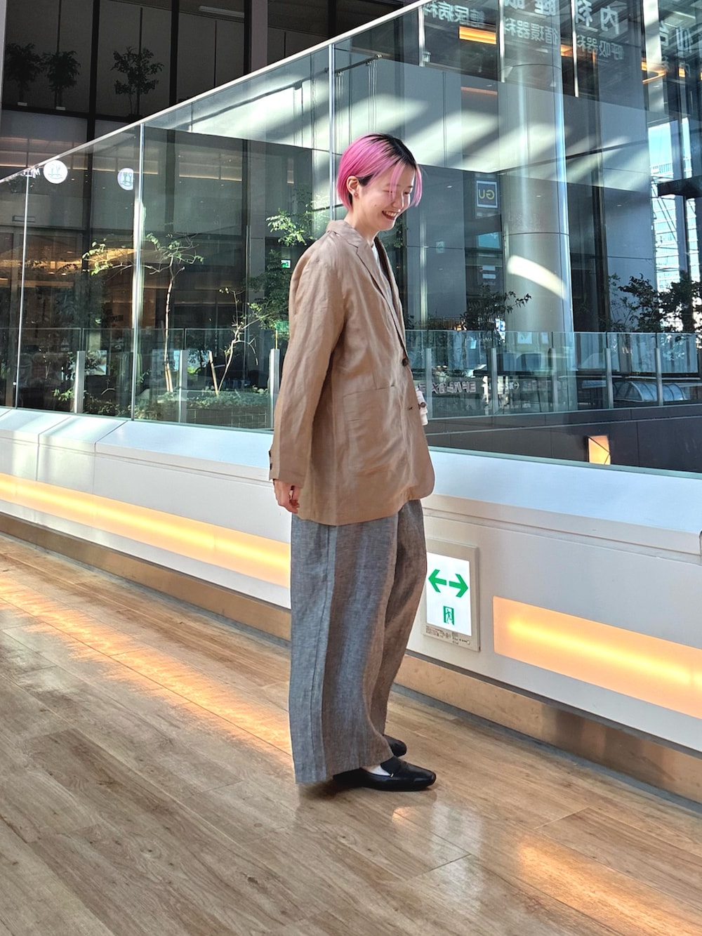 DOORSヘリンボーンリネンワイドギャザーパンツ- 着用カラー: