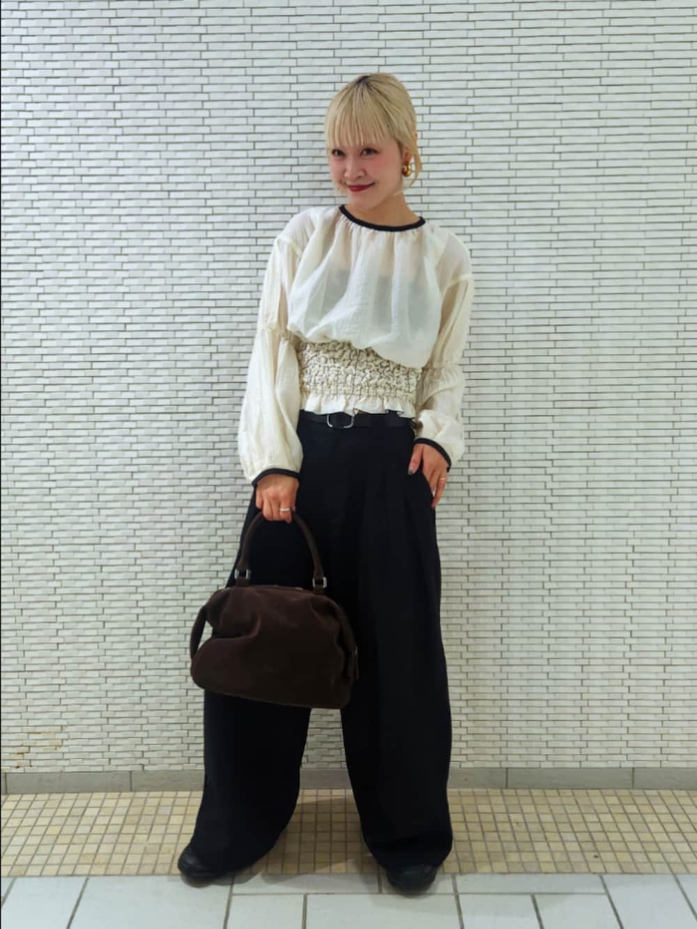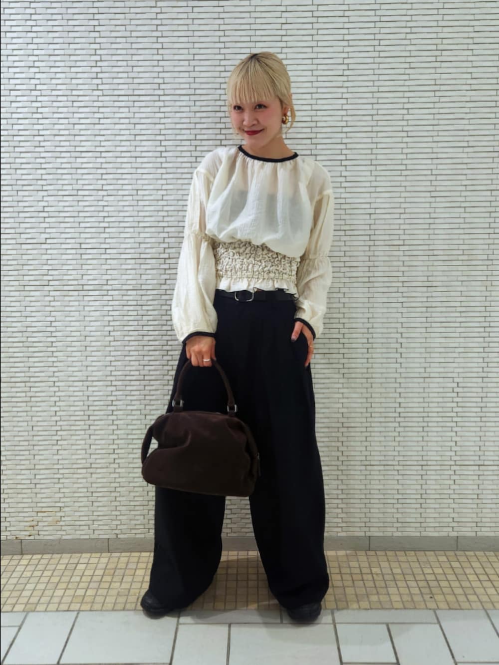 シンプルなコーデですが、ブラウスでアクセントをプラス♬