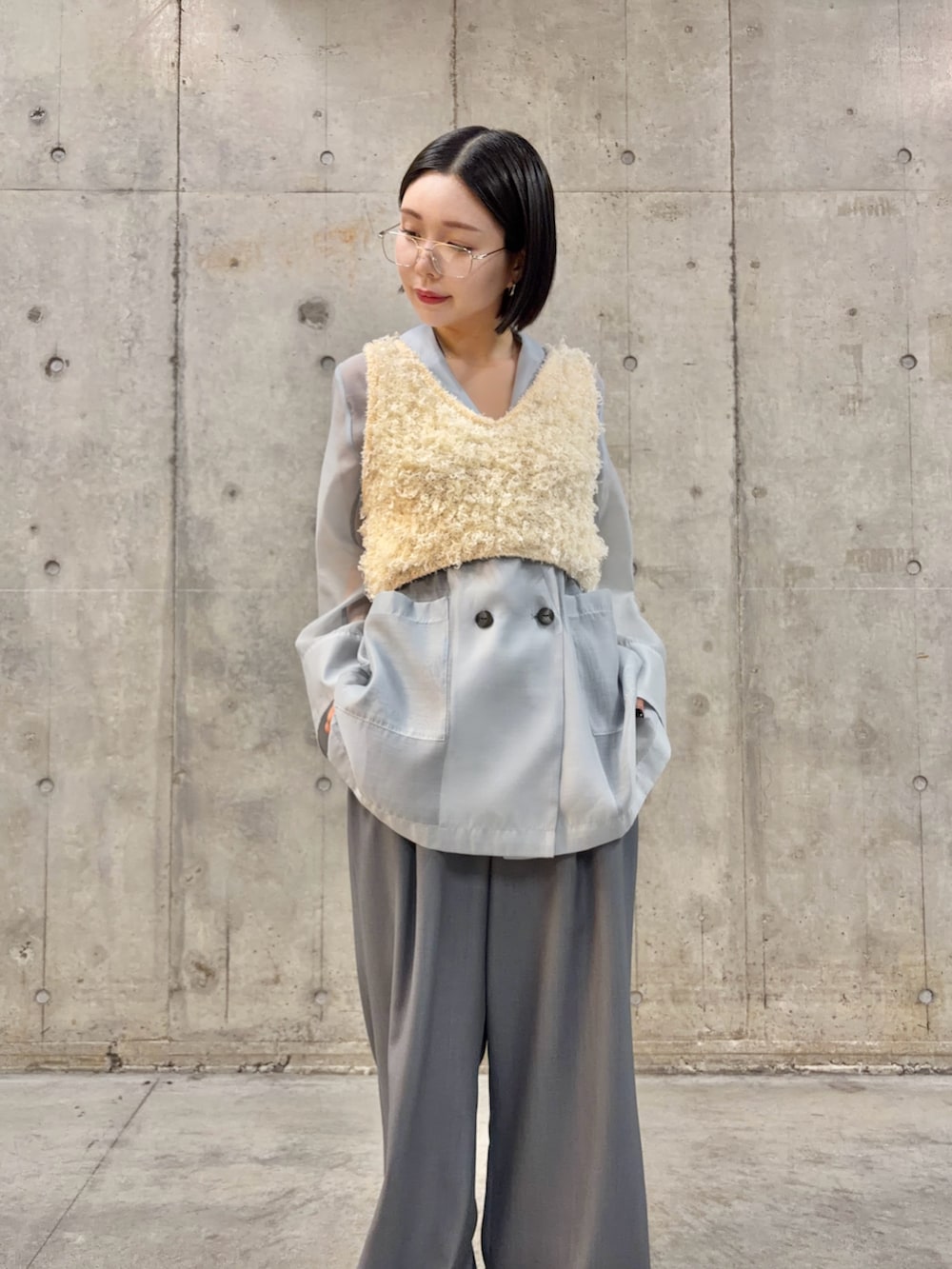 シアージャケットにビスチェを重ねて