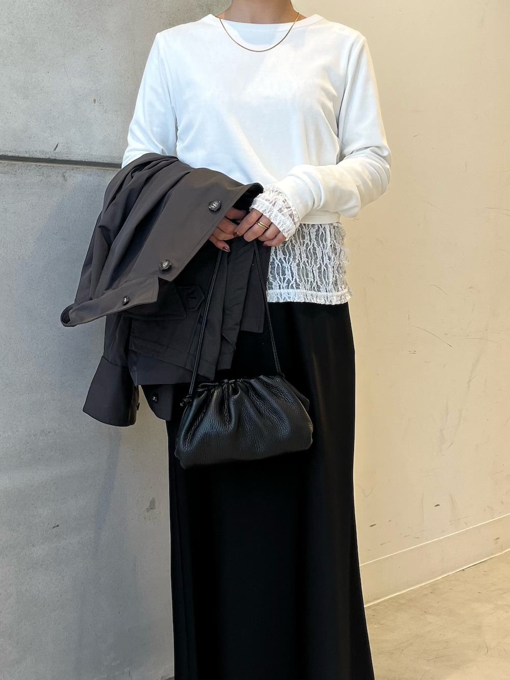ほどよいハリ感と光沢感で、カジュアルなスタイリングにはもちろんですが、きれいめなコーデにも馴染みます。