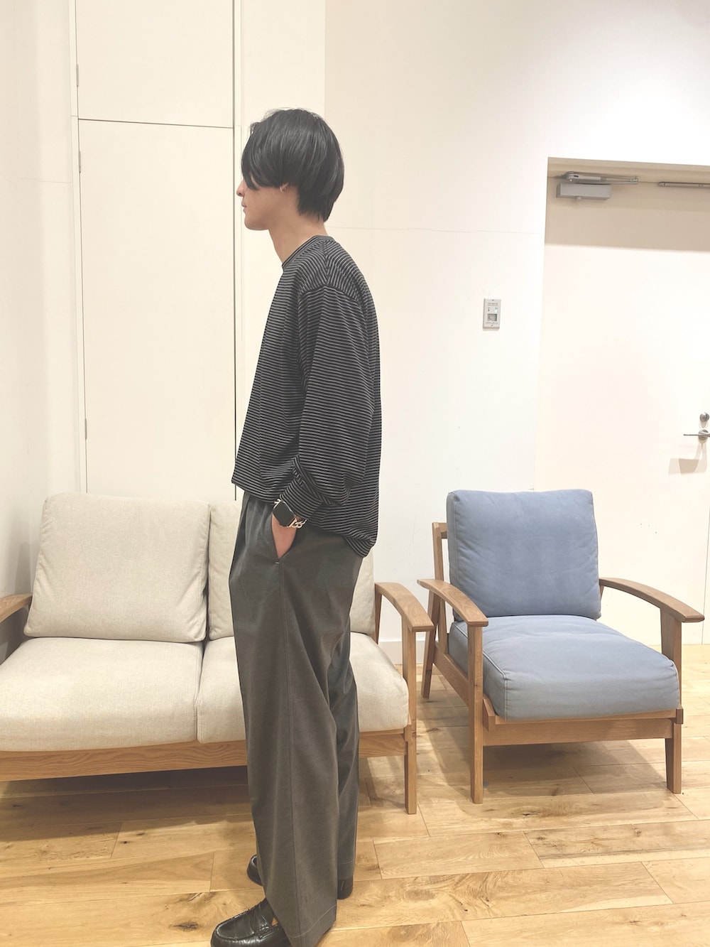 パンツはワイドと履きやすく、ロンTもゆったりと着やすいサイズ感となってます!