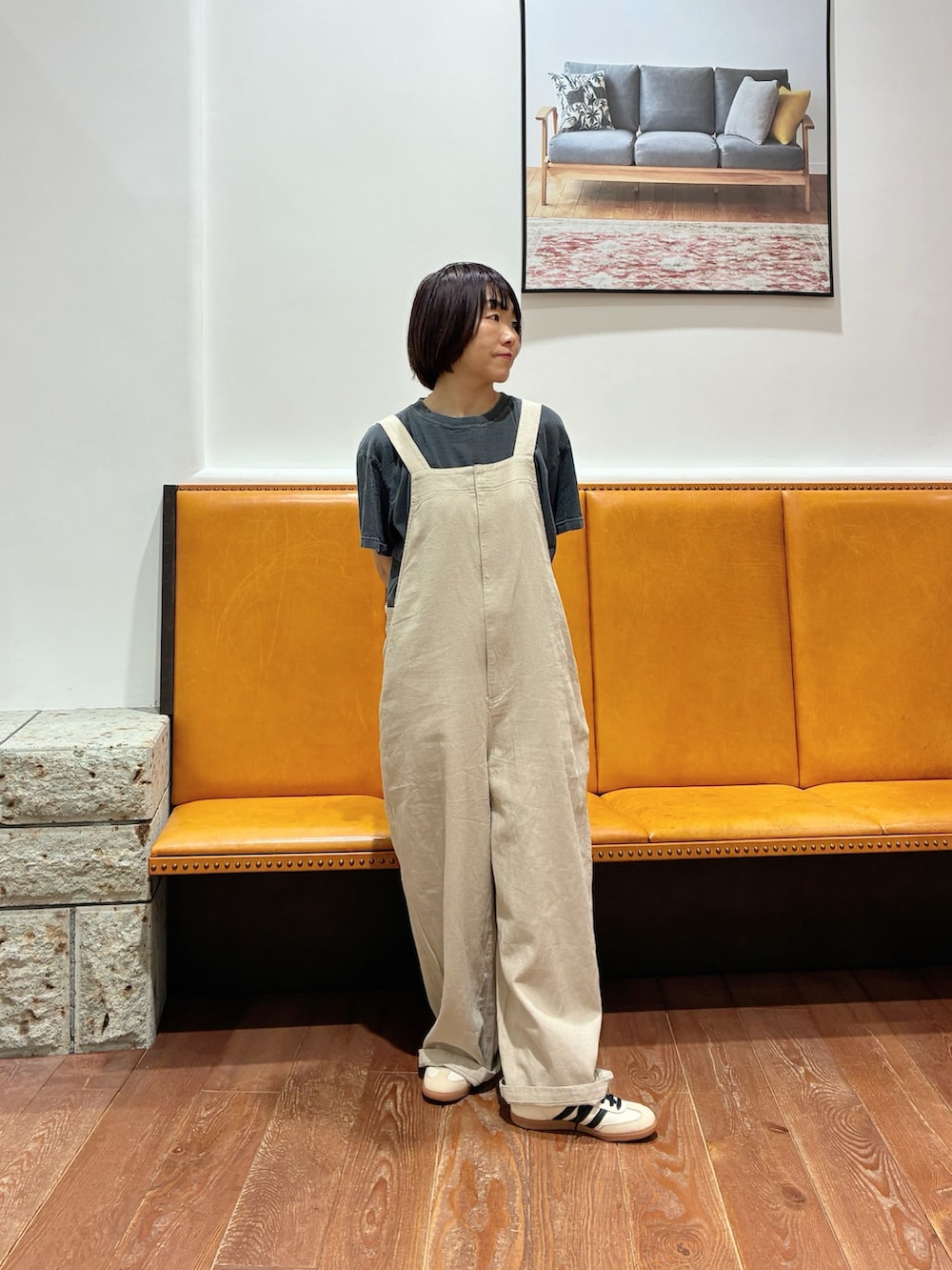 サロペットは、Sを着用してます
