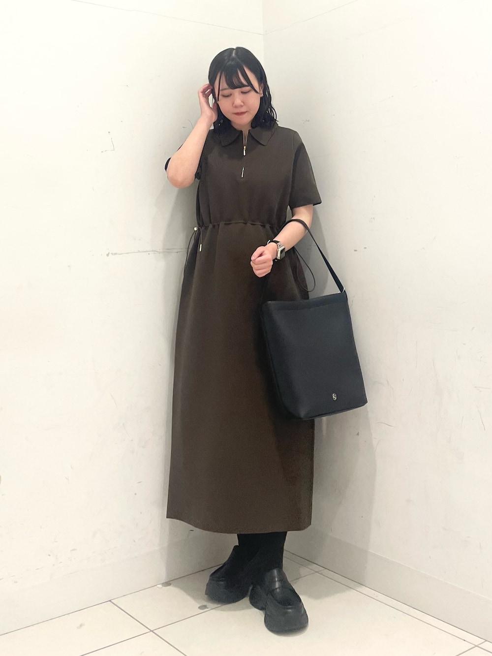 今回はフォルムニットのワンピースを着てみました