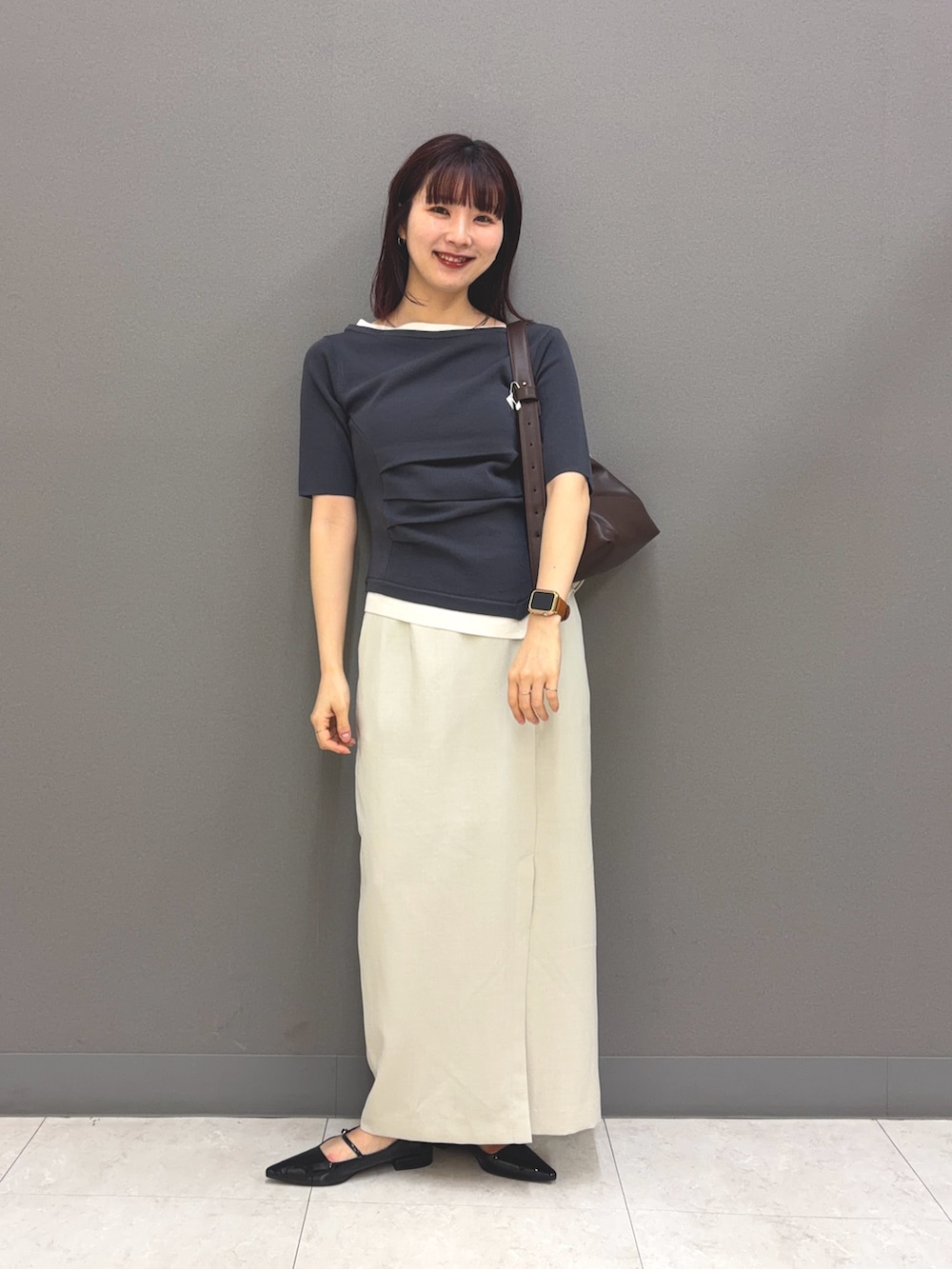 トップスはウエストのギャザーで