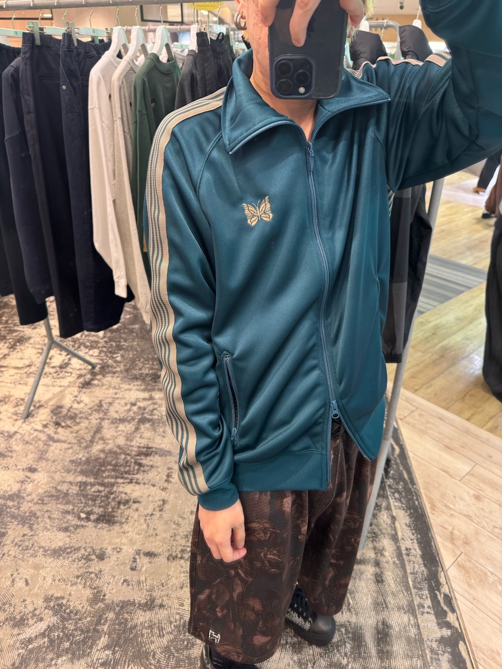 春らしく、緑のトラックジャケットを合わせてみました!