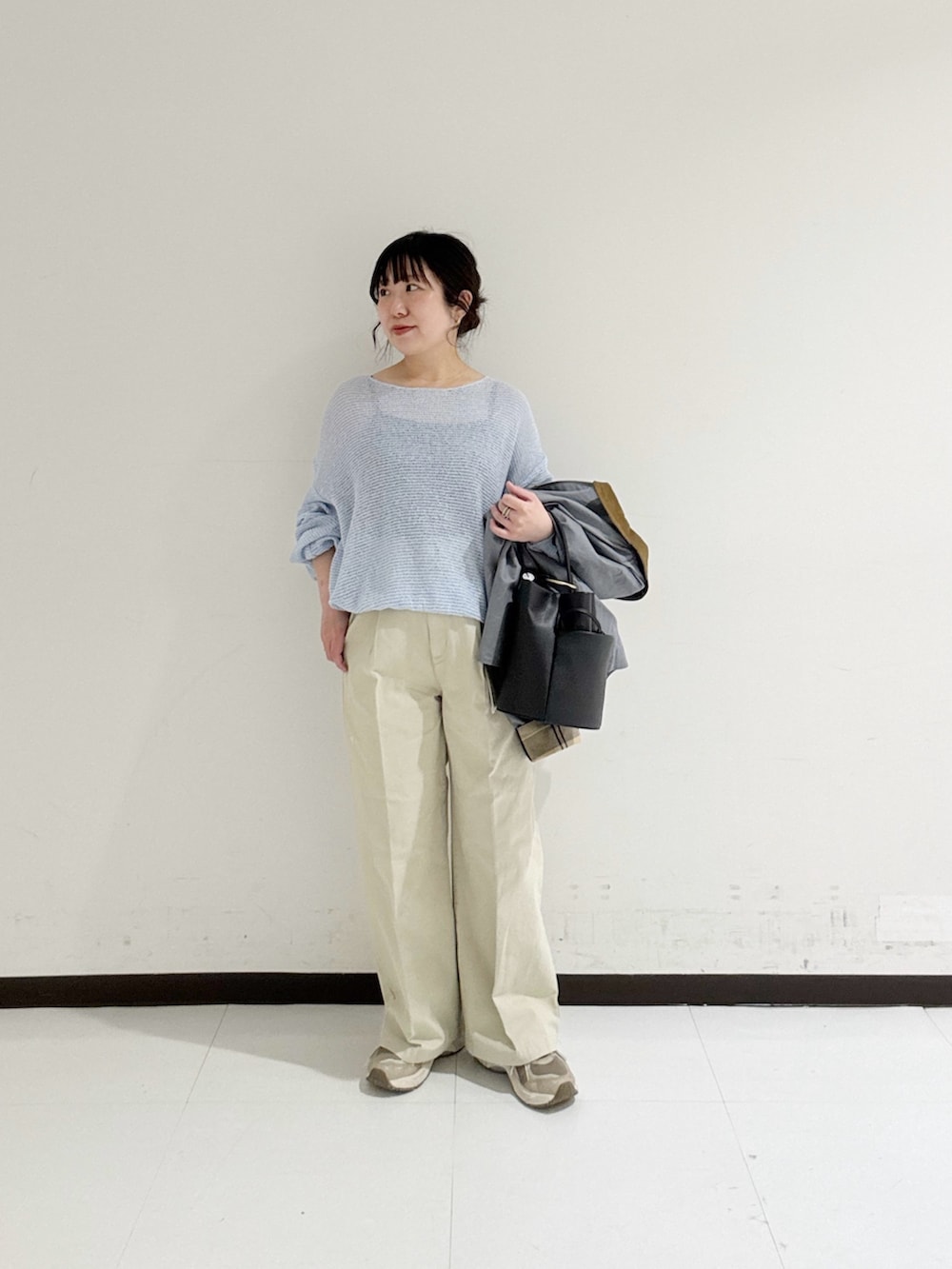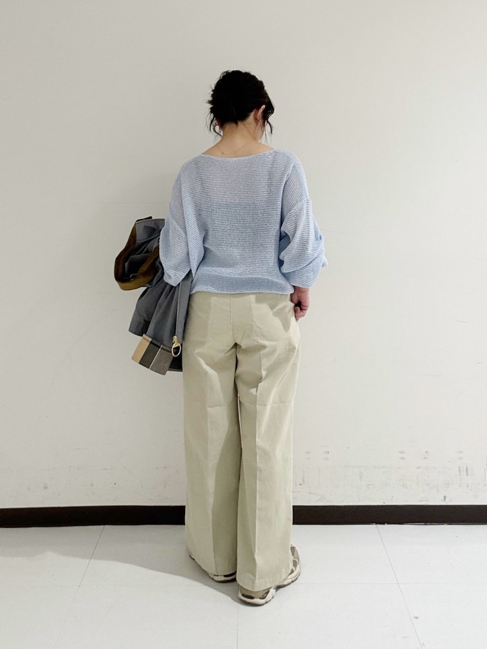 薄いチノ素材なので、カジュアル過ぎず品良くはけてトップスを選ばずお召しいただけますよ◎