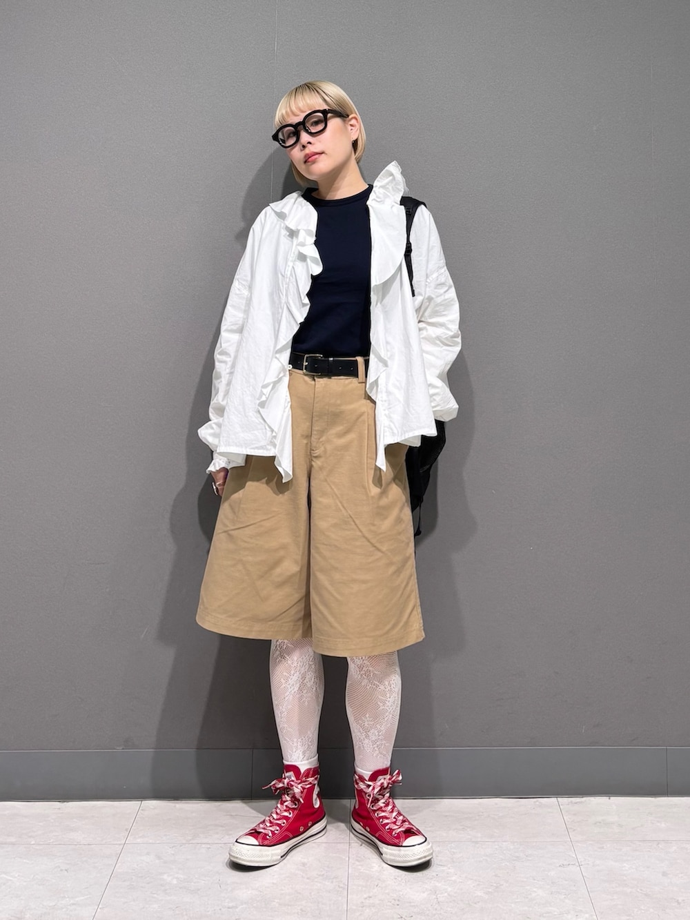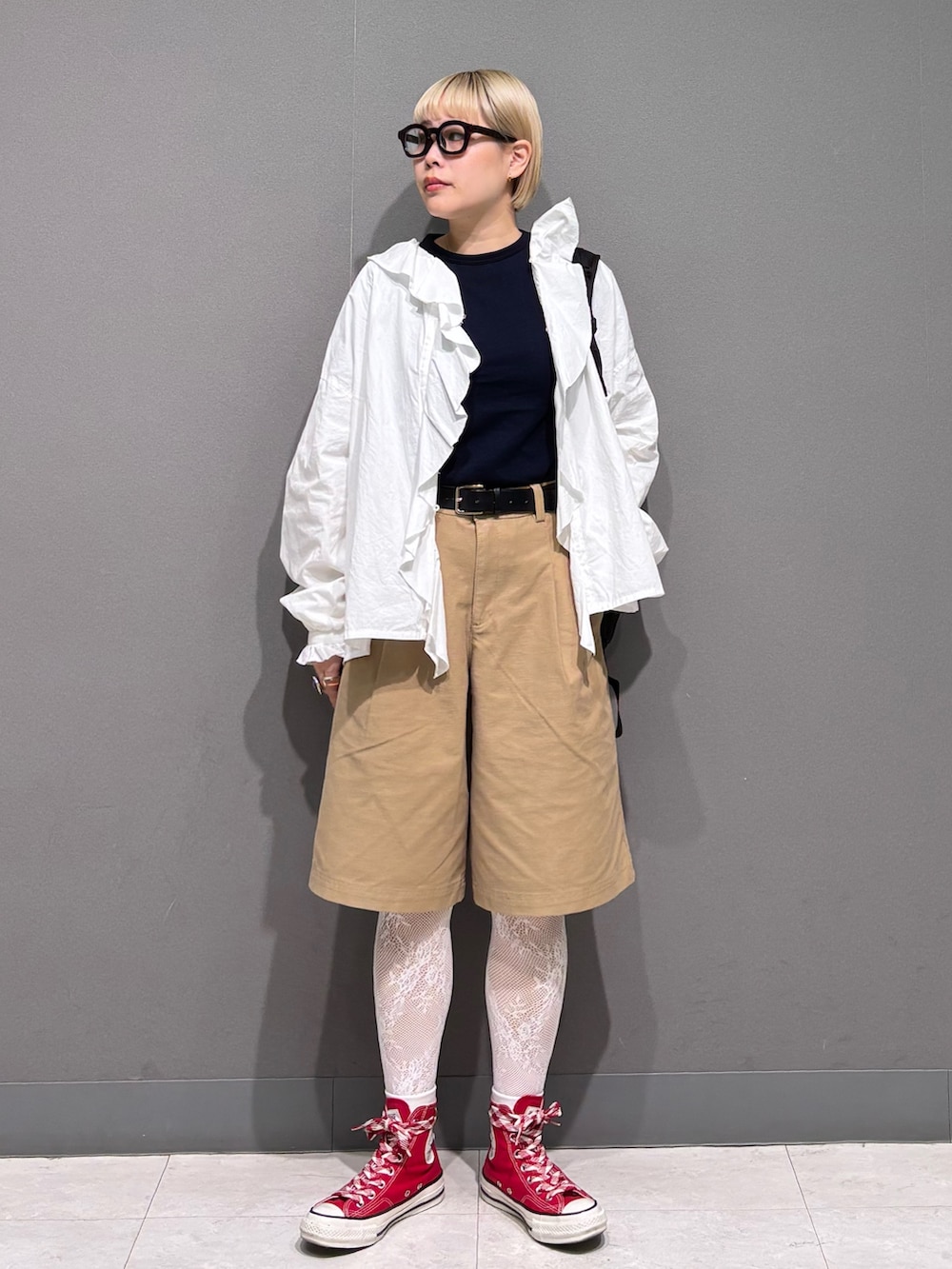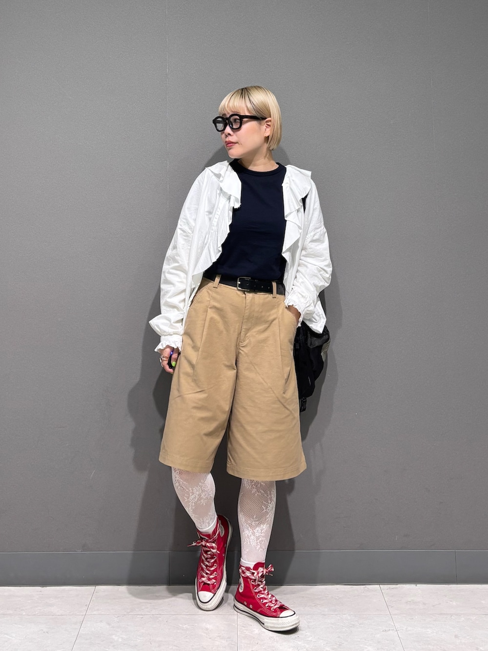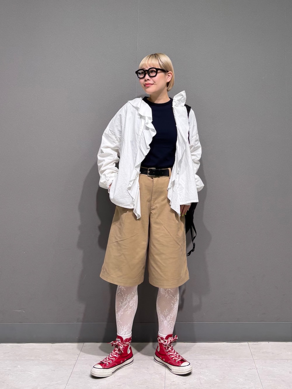 赤のコンバースで差し色◎