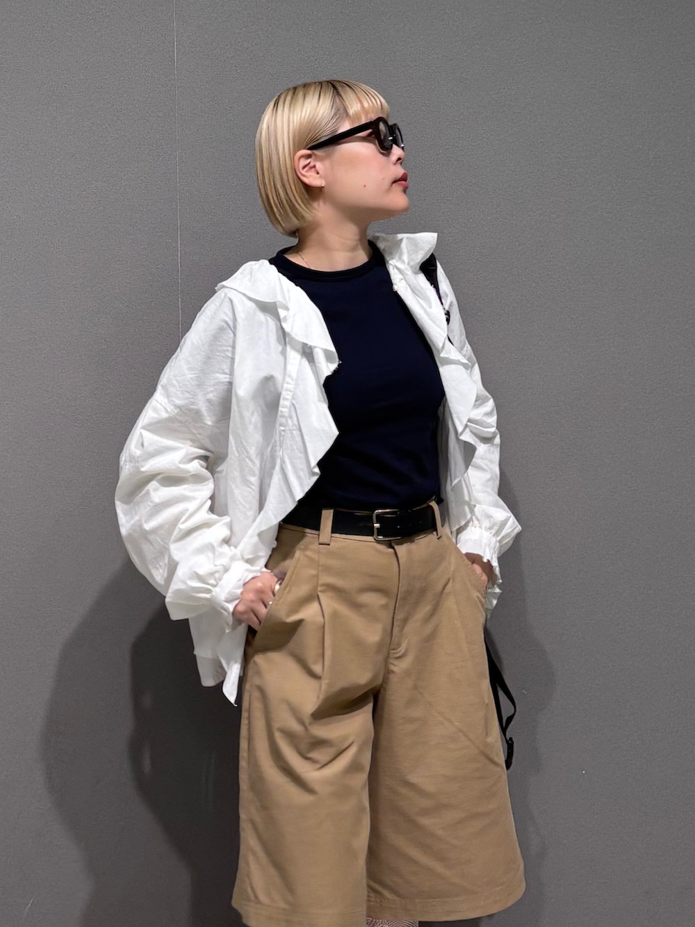 その上からフリルブラウスを羽織りました。