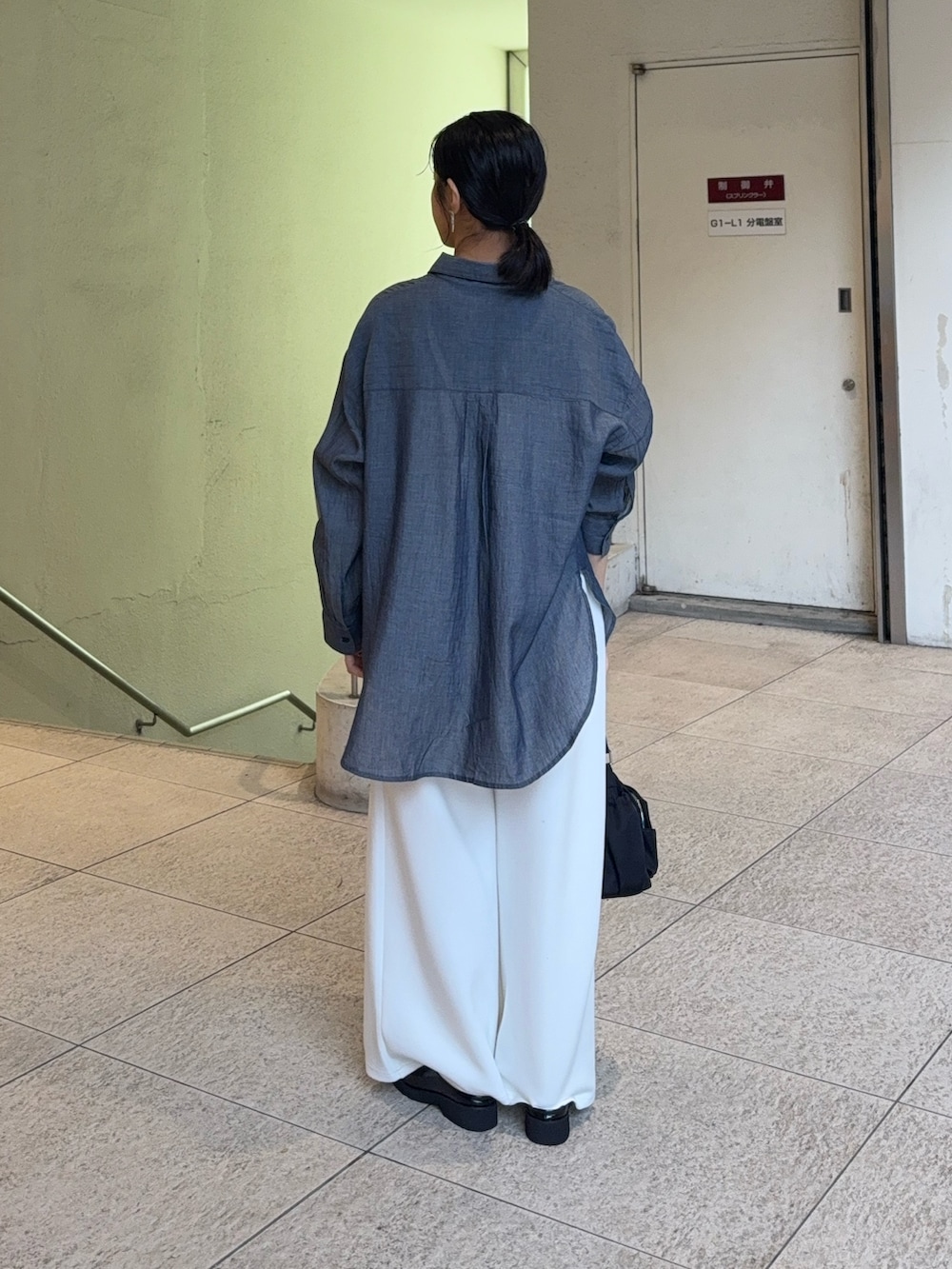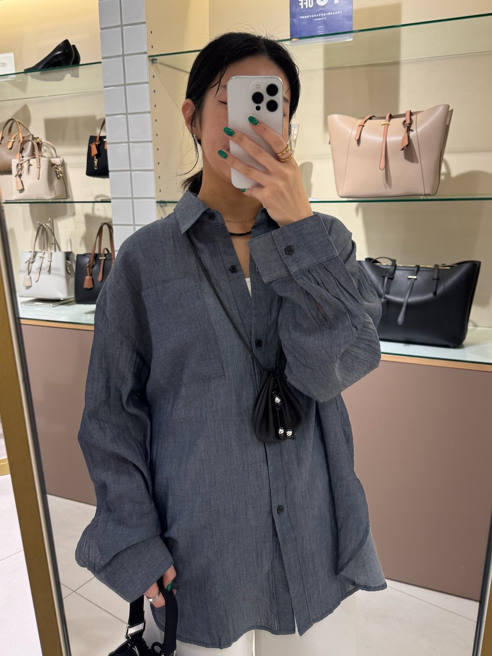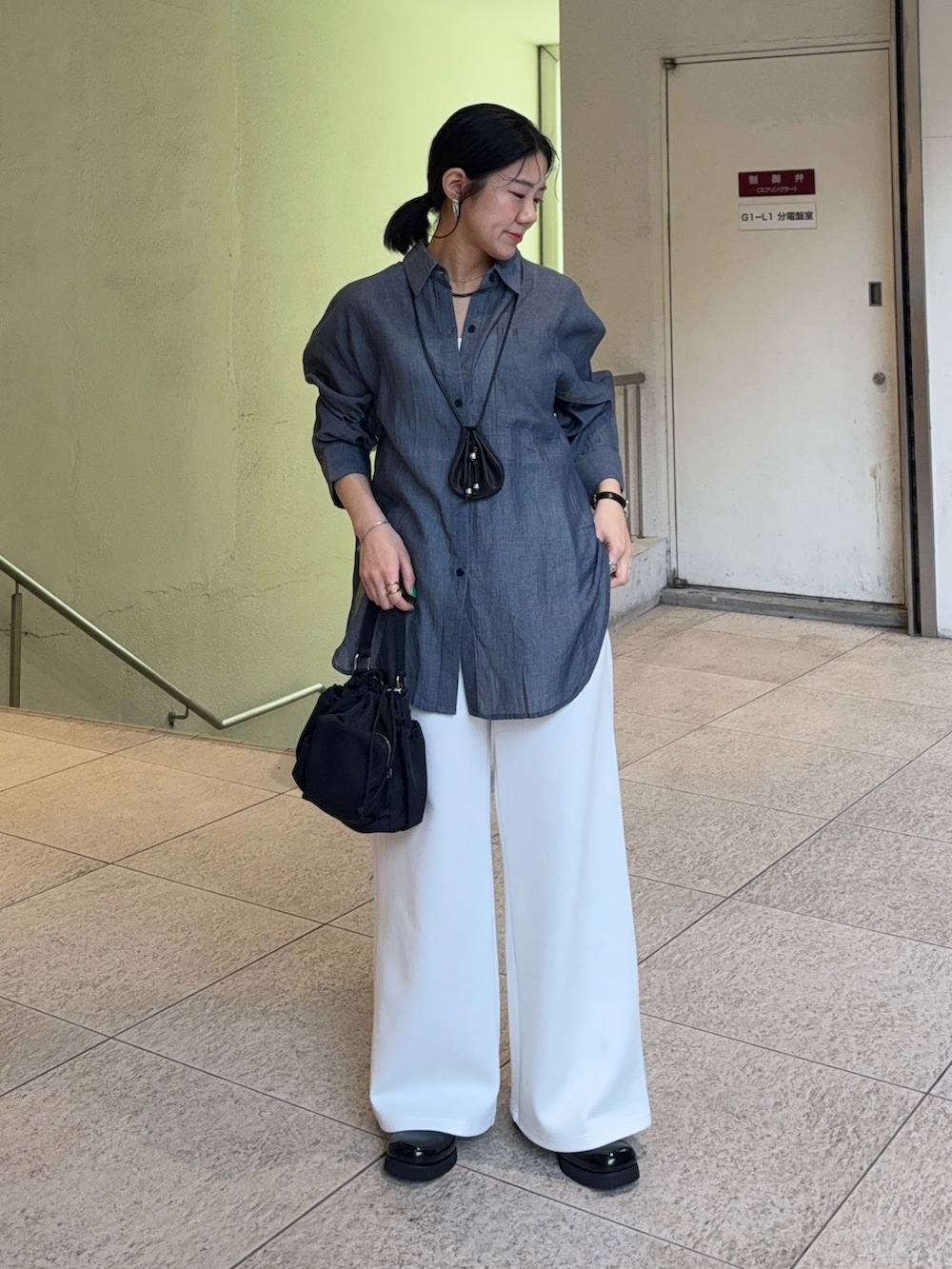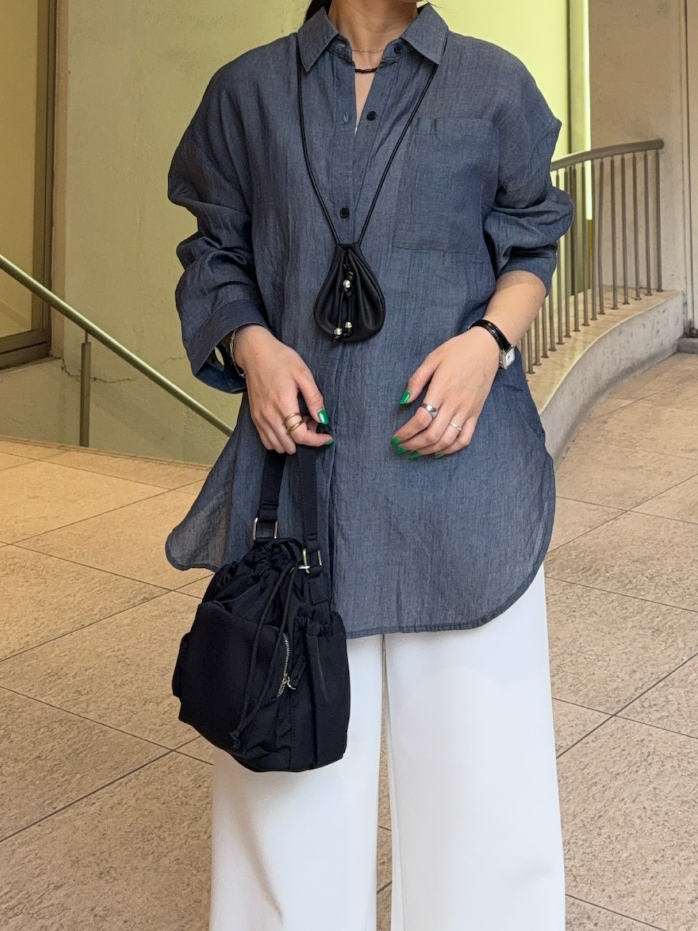 春っぽくデニムシャツ×白パンツのコーデ😚