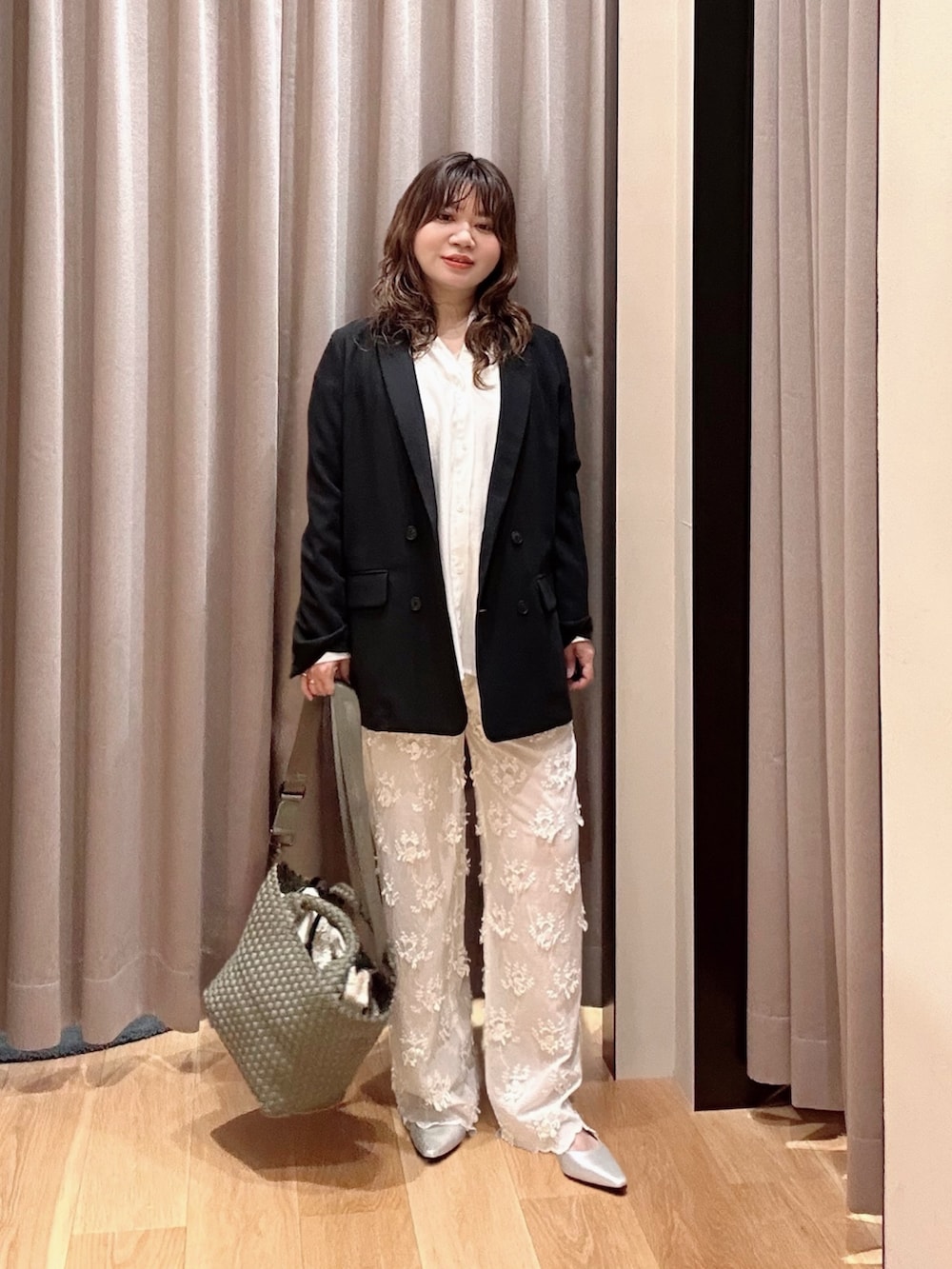 ボトムは細かな刺繍が可愛い着映えパンツ。