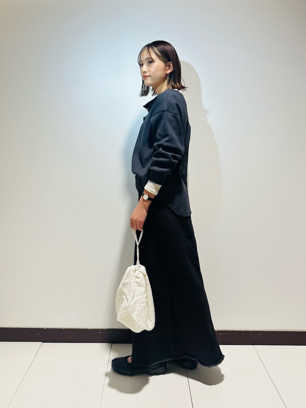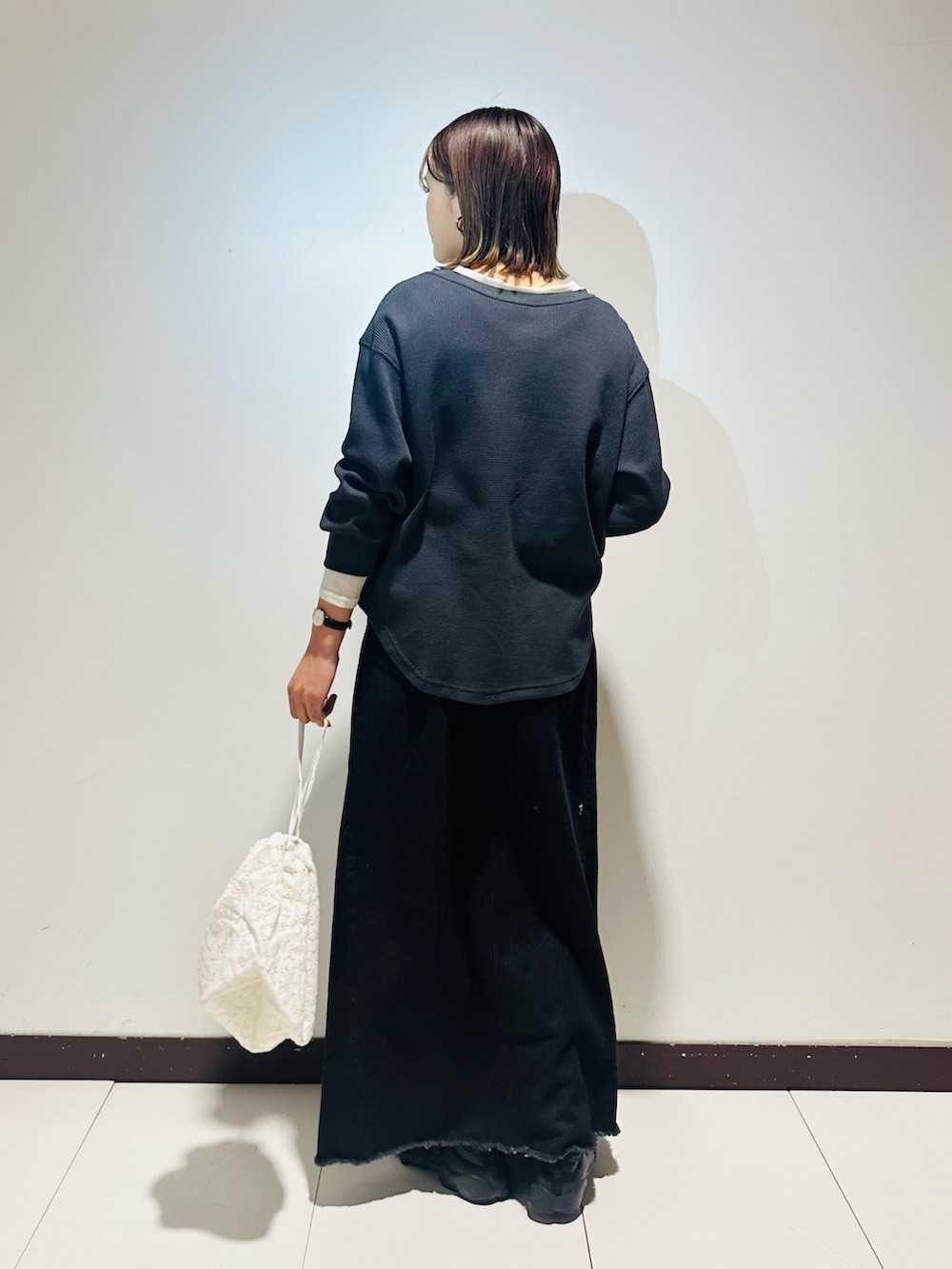 インナーのロンTEEは、シアー素材で重たくなり過ぎずレイヤードスタイルを楽しめます🍀*゜