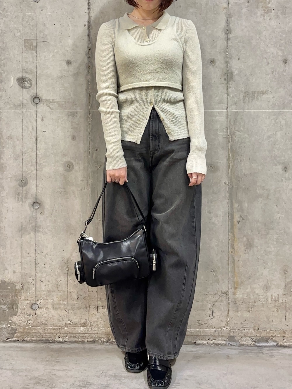 今回はカーブシルエットの綺麗なカーブデニムと合わせ、シックにまとめましたが、春らしさならスカートでも明るめのボトムスでも🙆♀️
