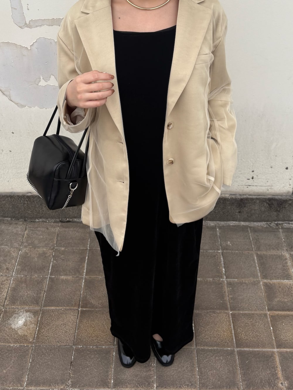 ベロアワンピースとチュールのジャケットを着てオケージョンコーデを組みました!