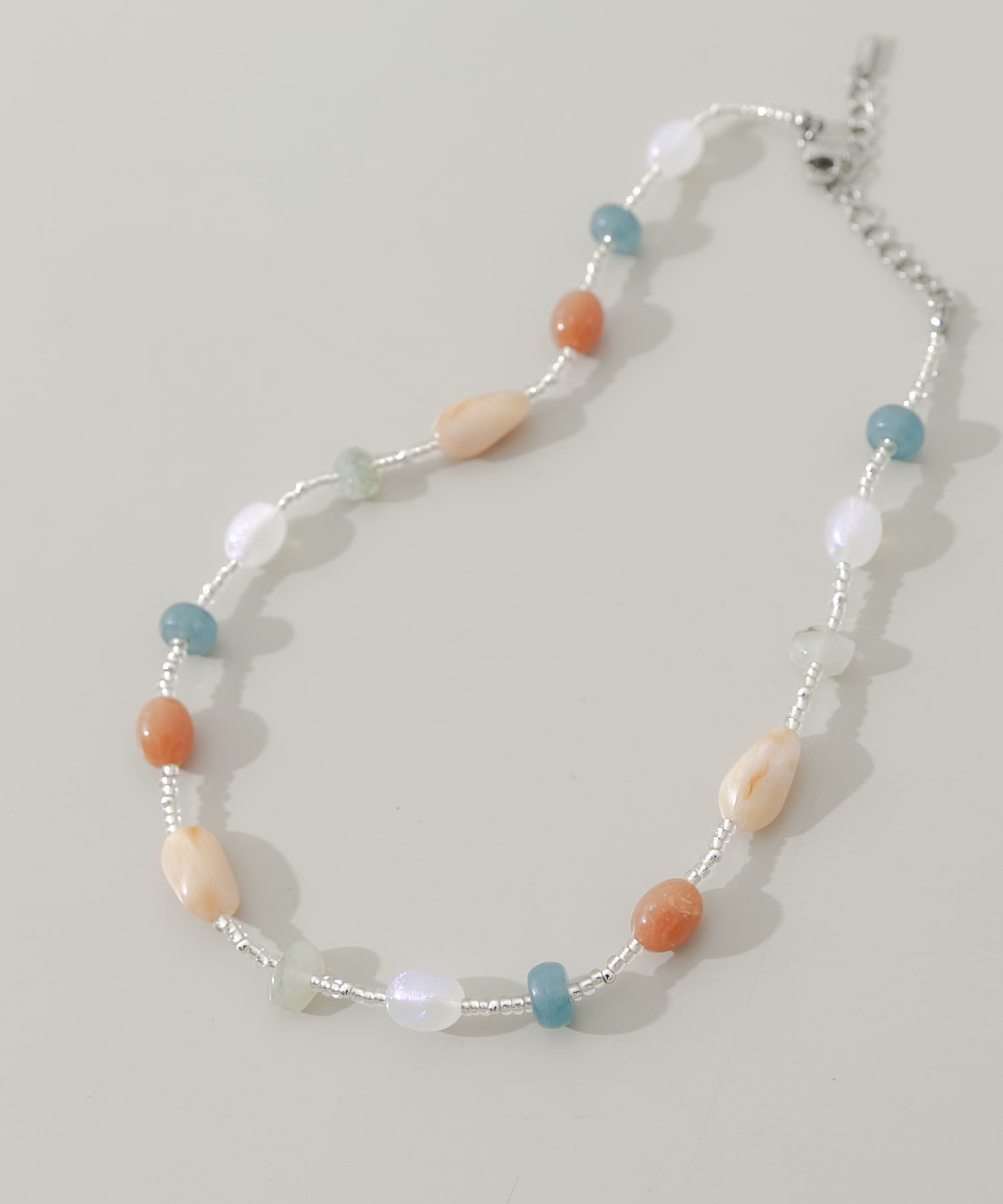 SMELLYステンレスビーズカラーガラスネックレス- 着用カラー: