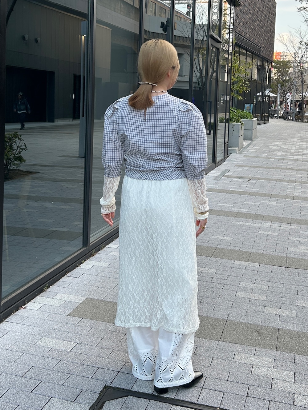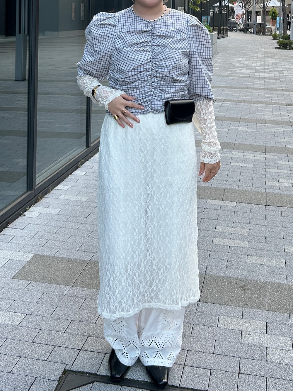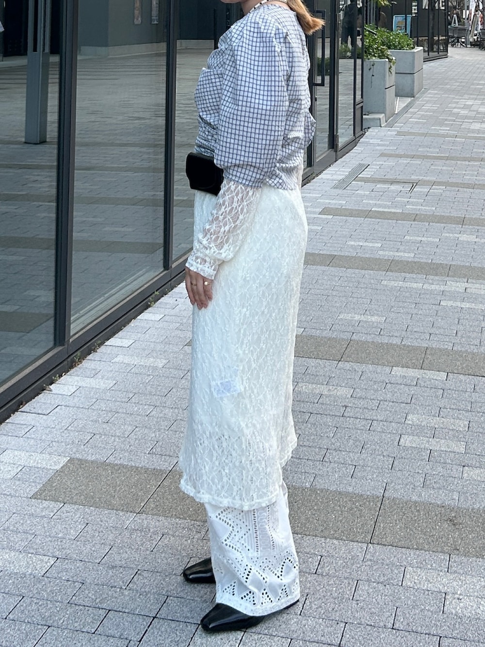 レースワンピと合わせて、ボトムスはデニム合わせももちろん可愛いですが、もう少しきれいめにしたかったのでホワイトのレースパンツを合わせました!