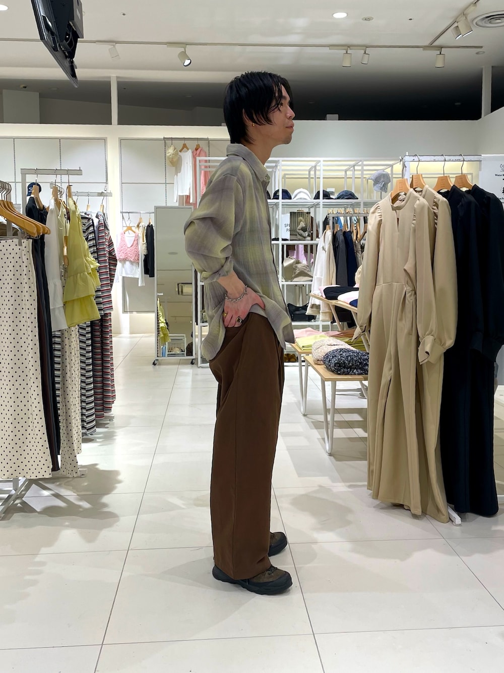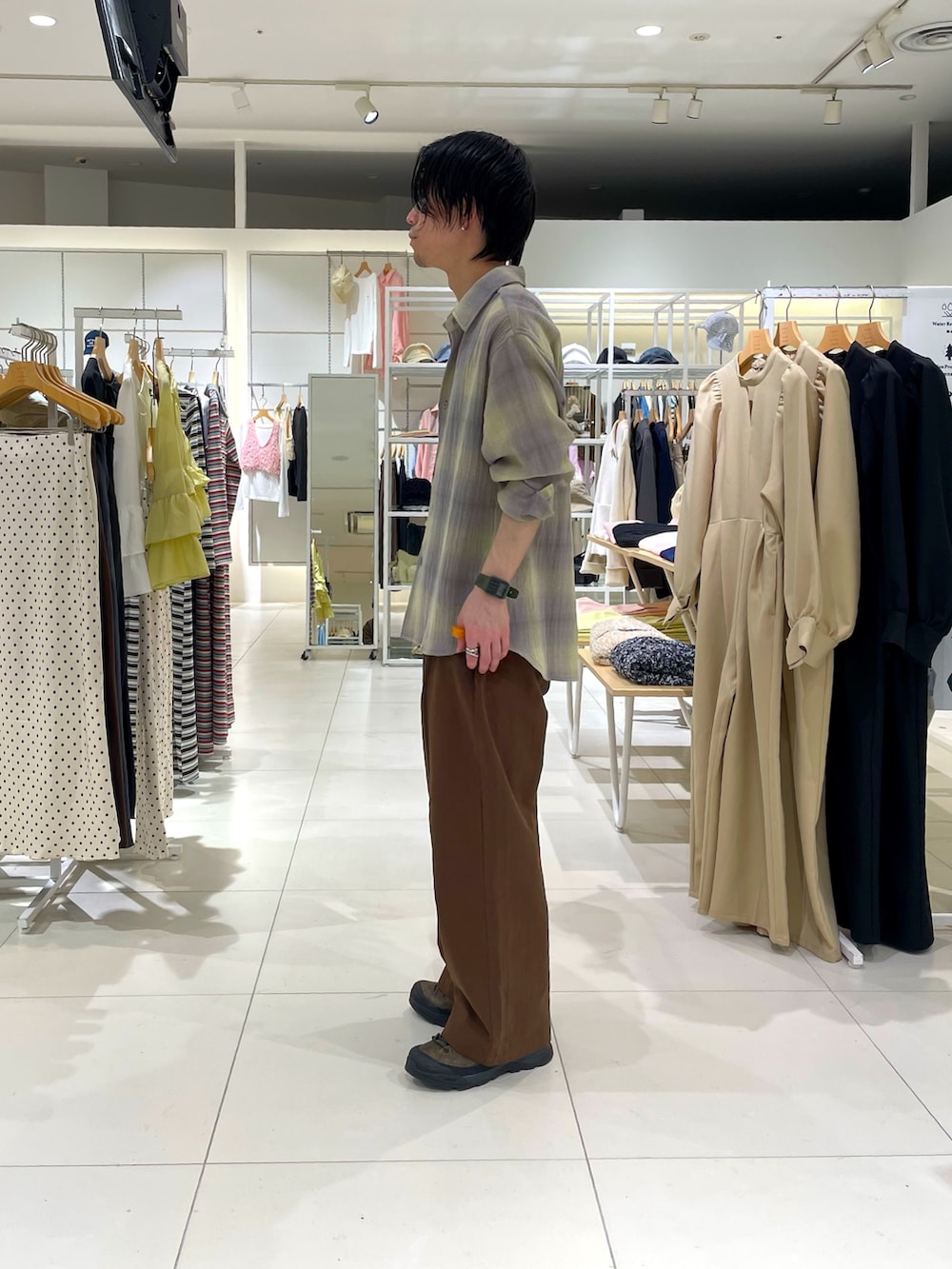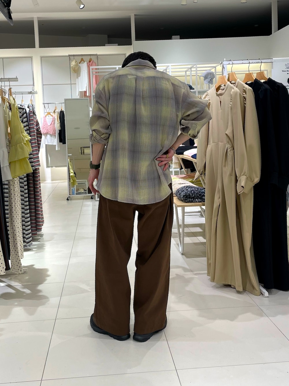 暖色で纏め、温かみのある春らしくもあり秋らしくもあるコーデ。パンツは薄手のコットン生地で夏でも履いていただけます。