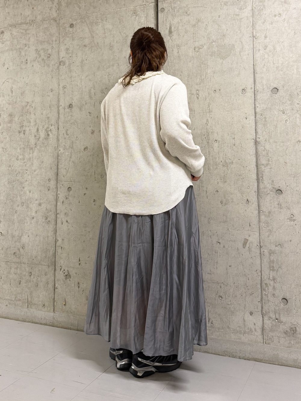 スカートは少し光沢感があり、形も綺麗でおすすめです!