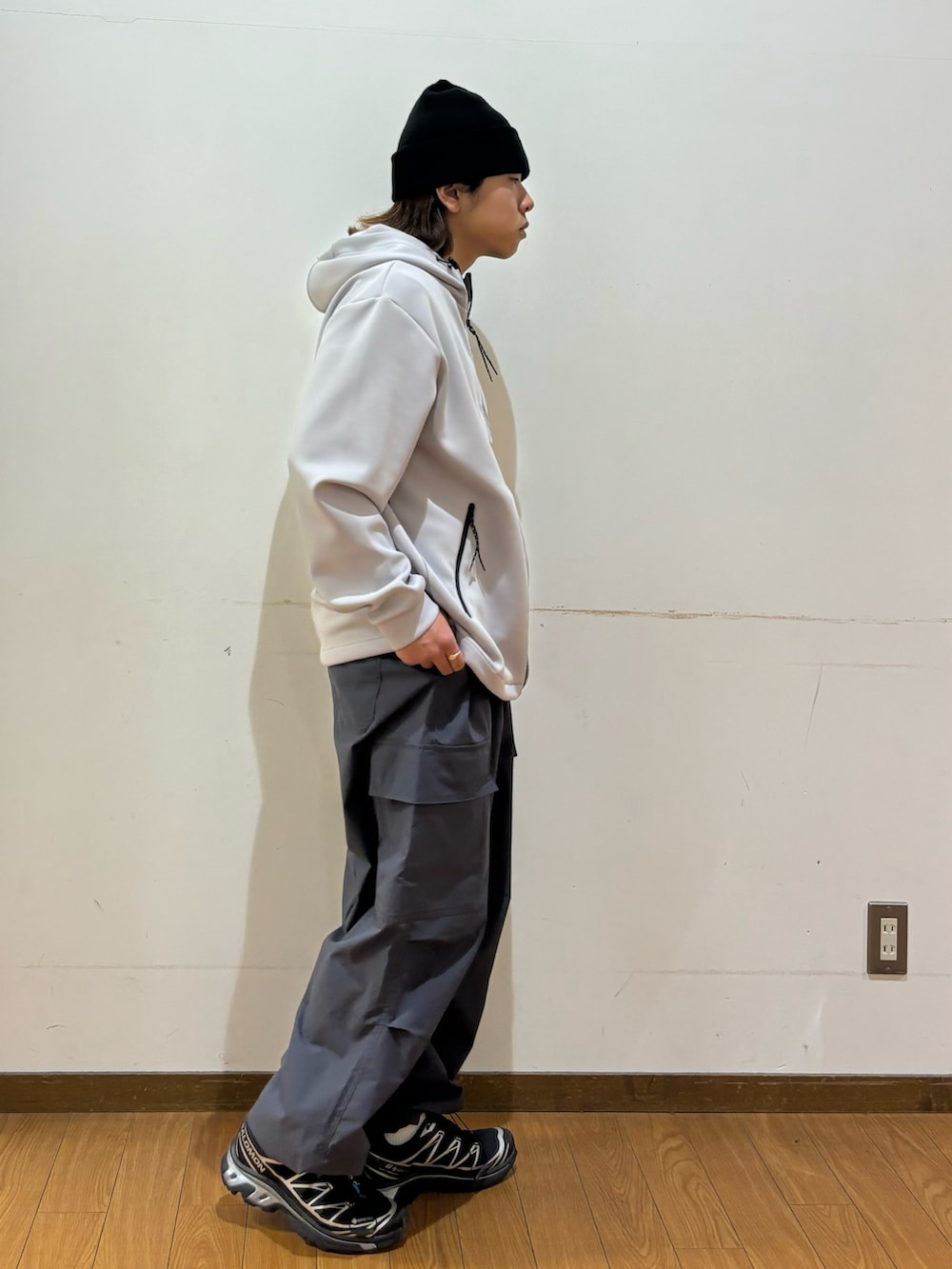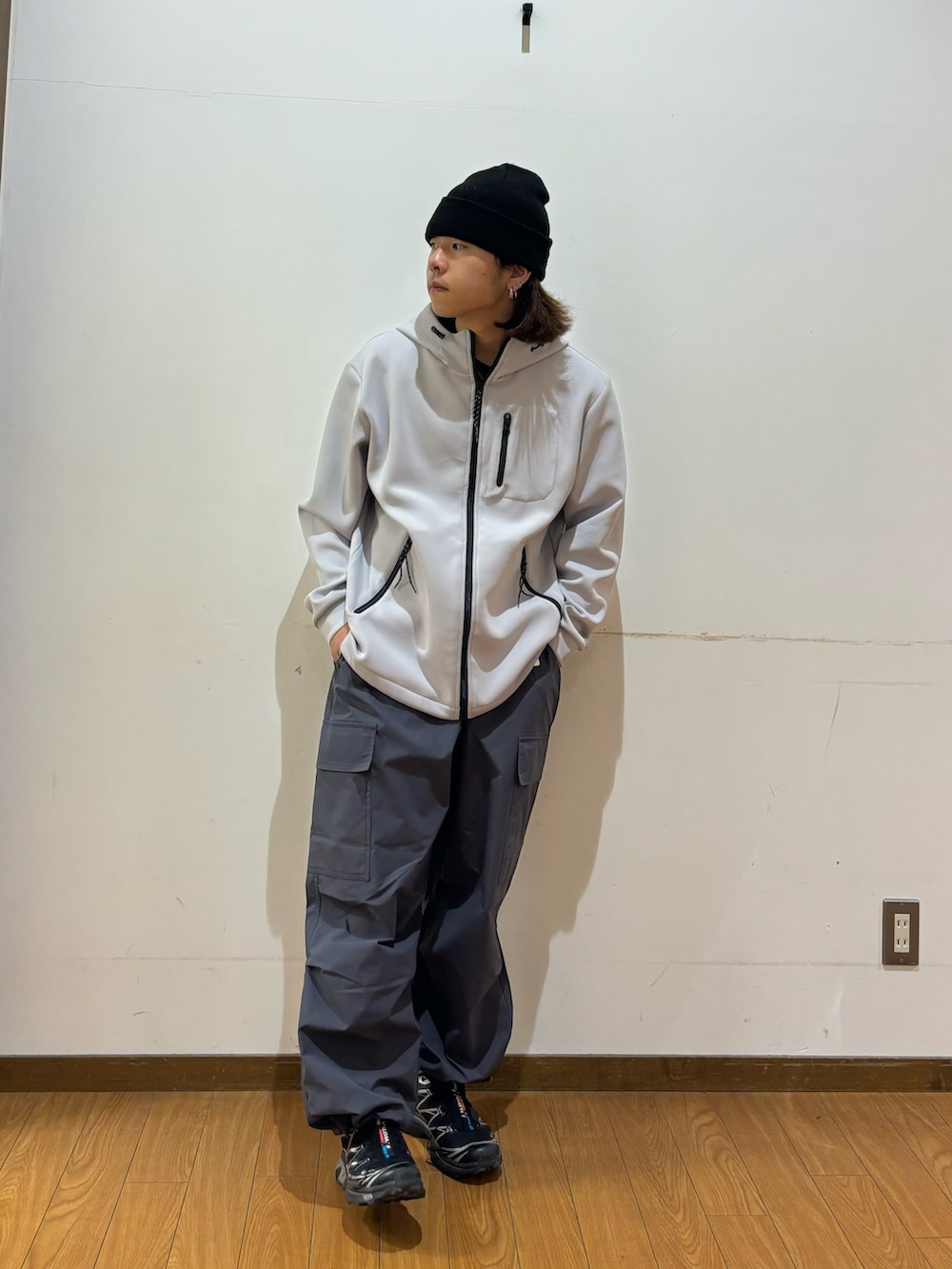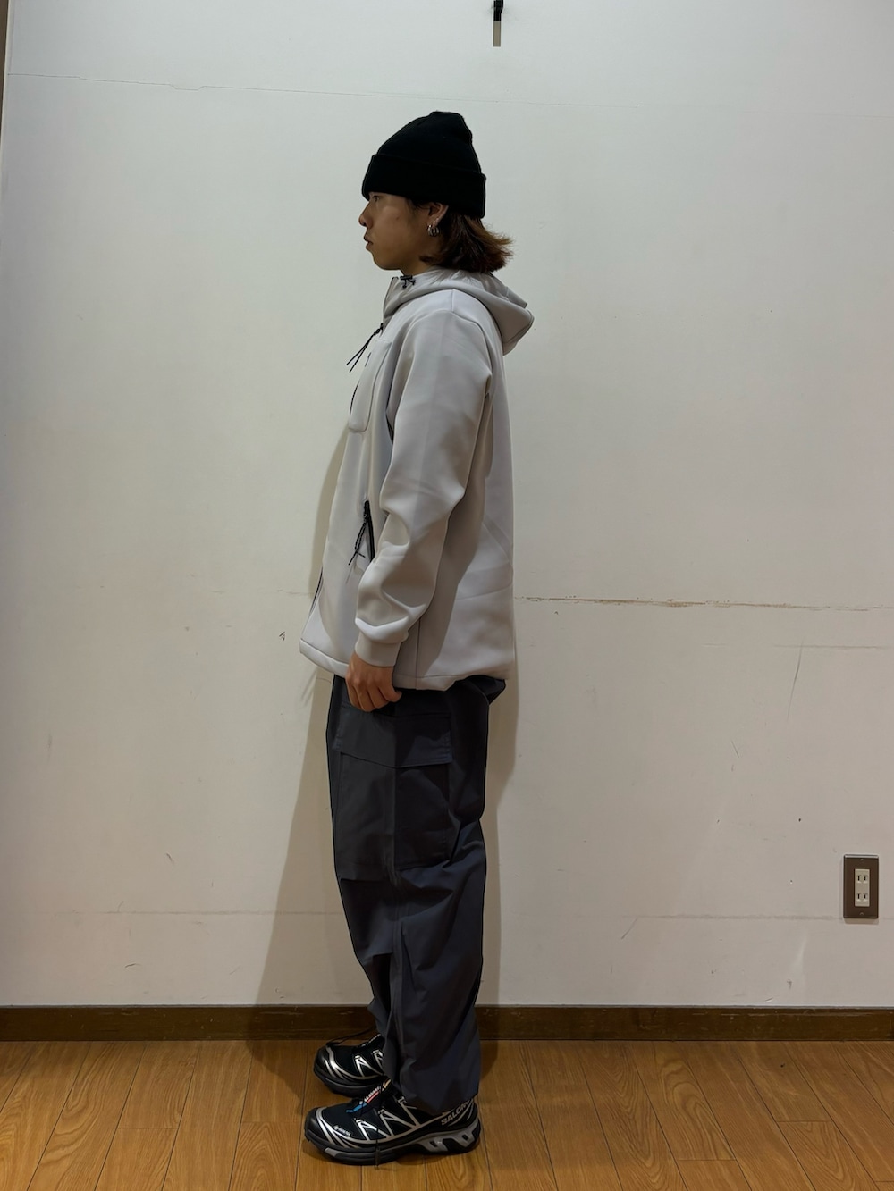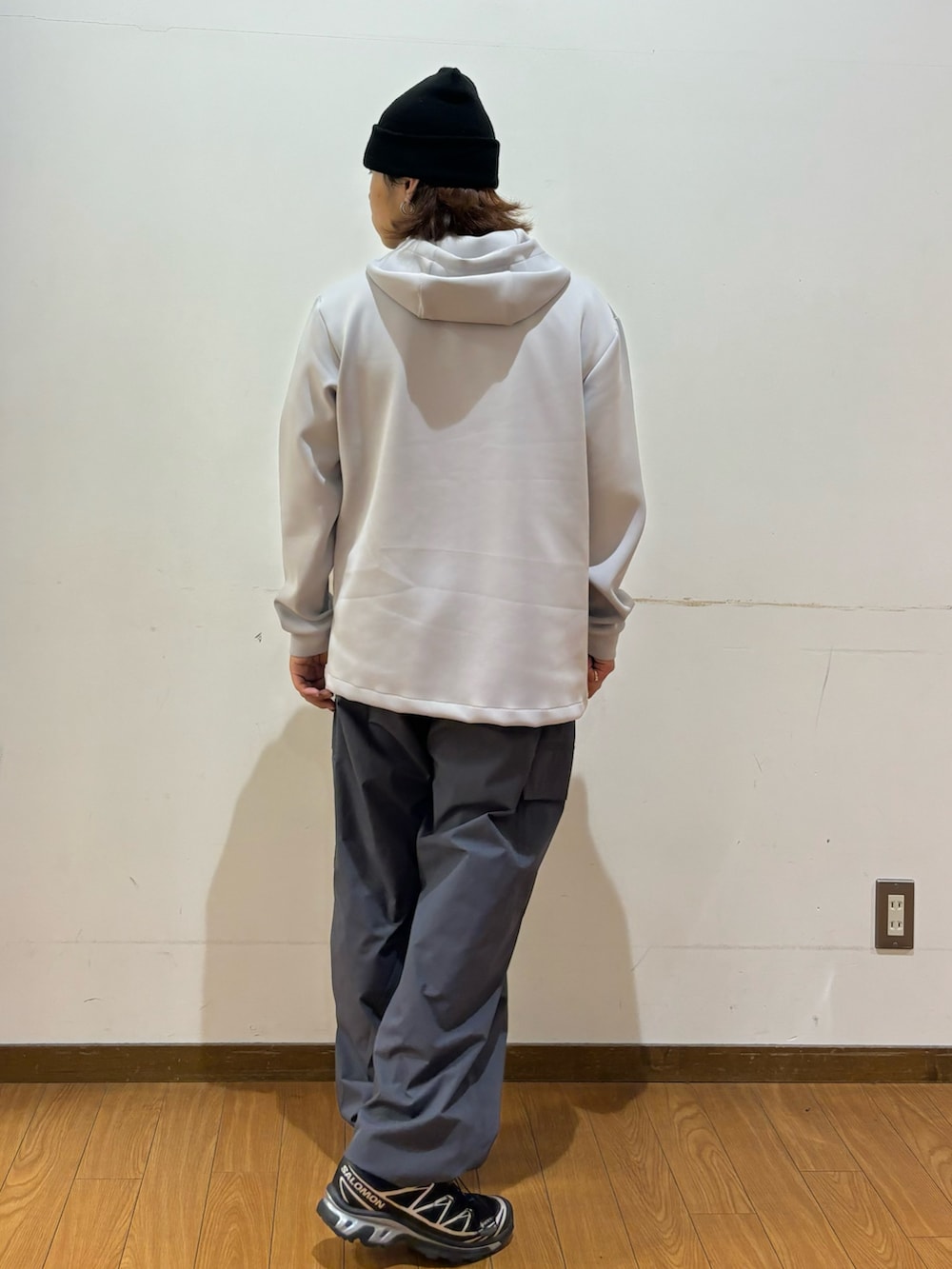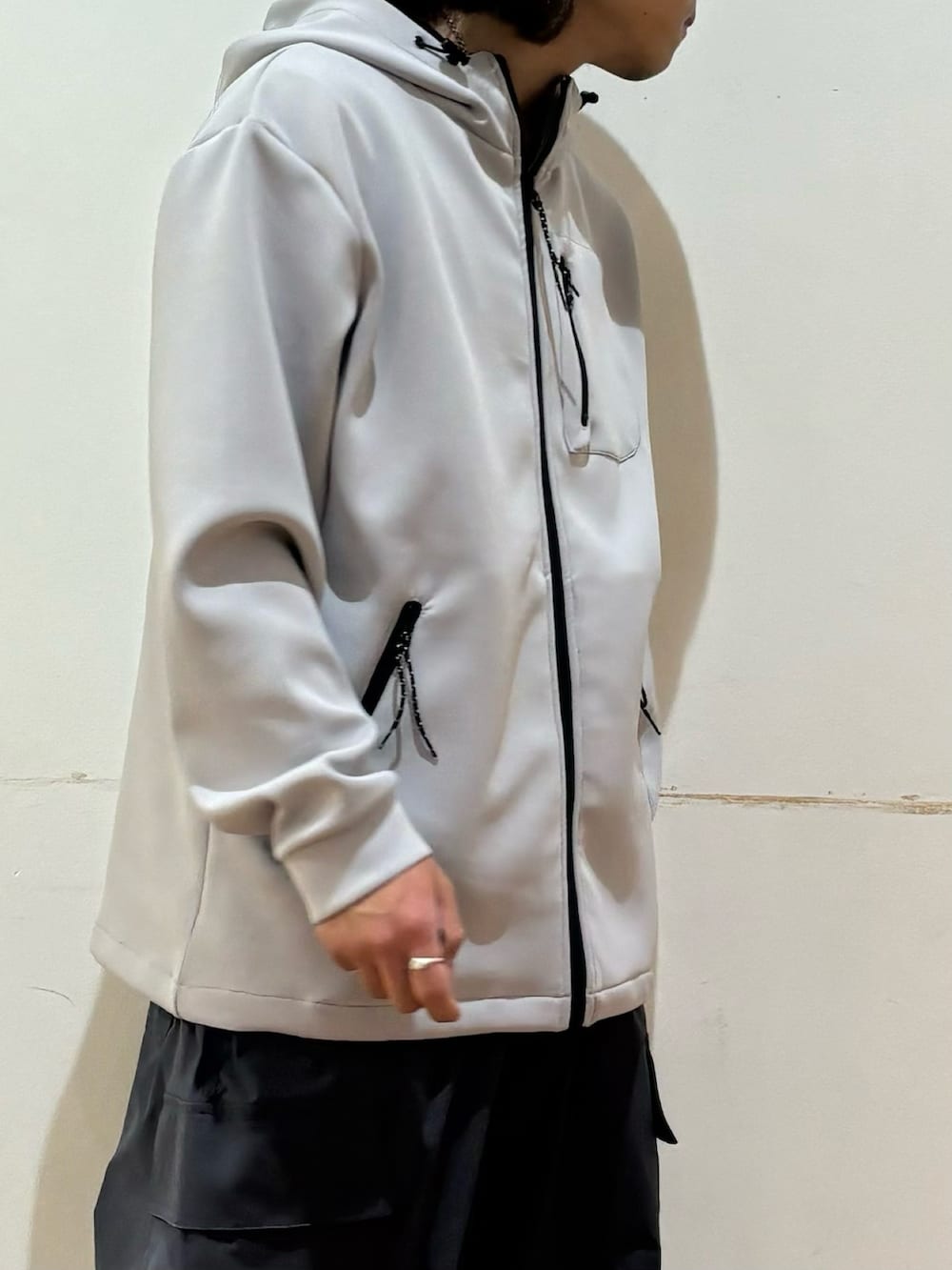 トップスのパーカーは伸縮性があり肌触りがとても柔らかいです!調温機能で幅広い季節で活躍してくれます!
